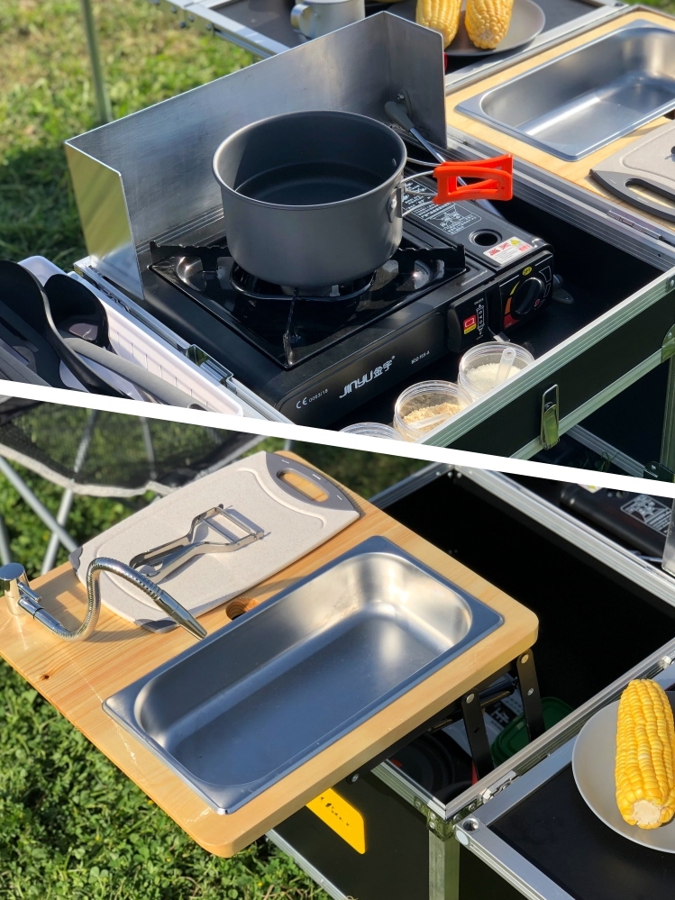 TAWA户外野营便携式不粘锅,采用嵌套组合,把七件餐具科学组合在一个尽可能小的空间,配合优质网状收纳袋,很难想象你的背包里就有一个户外厨房。