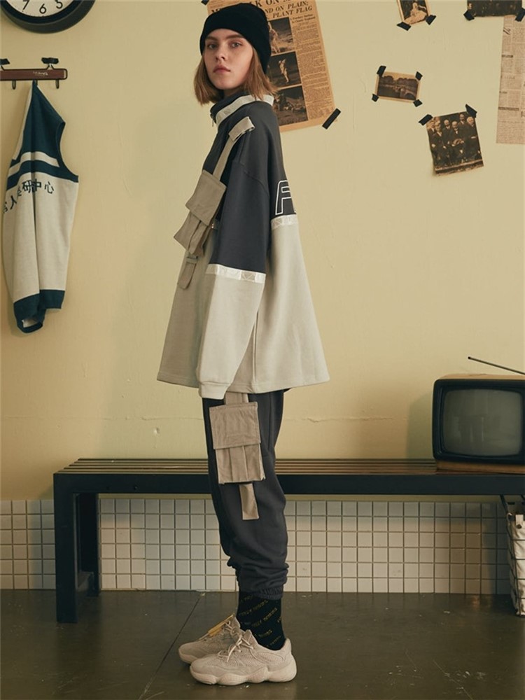 套头设计,穿脱更加方便,大口袋设计,实用又美观,可拆卸,可随意变换造型,可拆卸的领口,方便实用,宽松的版型,嘻哈范十足。