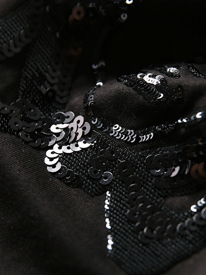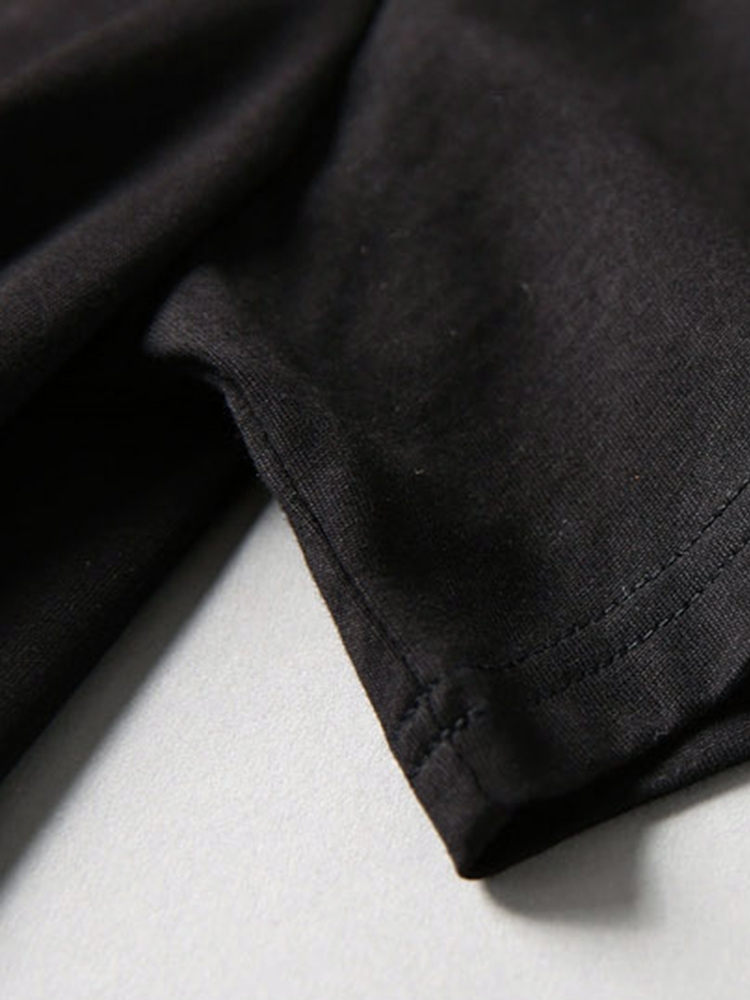 体黑色版面搭配简洁的套头圆领休闲百搭,给人强烈的视觉冲击感且充满个性创意,版型简约,带来惊艳的视觉效果。