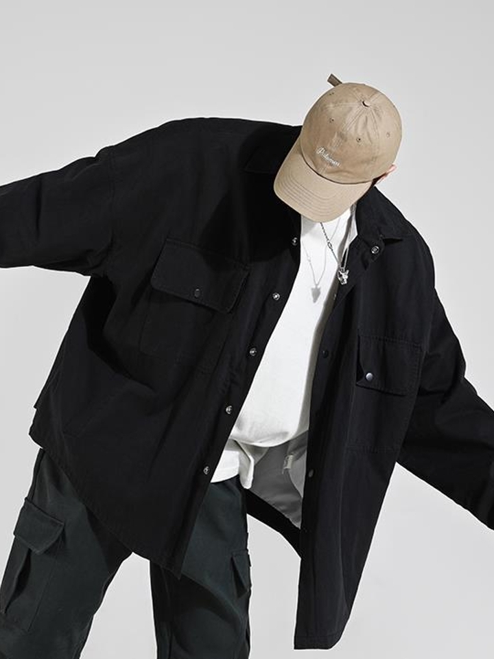 这款服装采用休闲宽松的版式设计,对身材有着很好的包容性,简单低调的纯色,构建清晰明了的视觉体验,带盖的口袋,丰富衣身细节,工装气息十足。