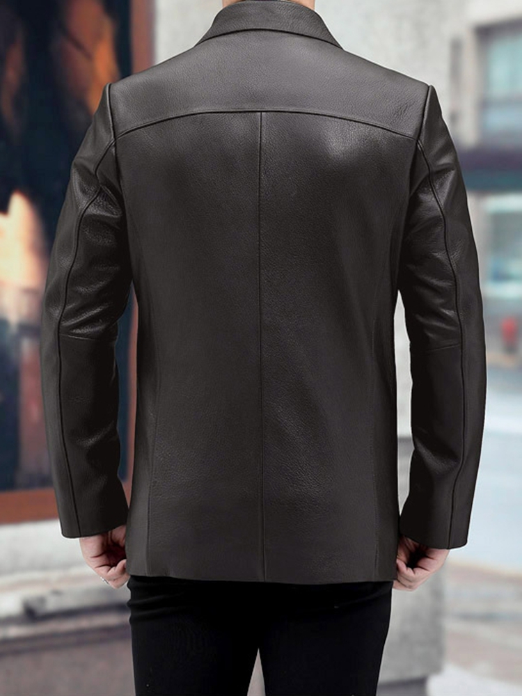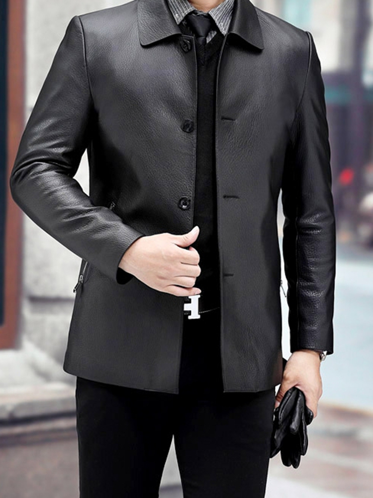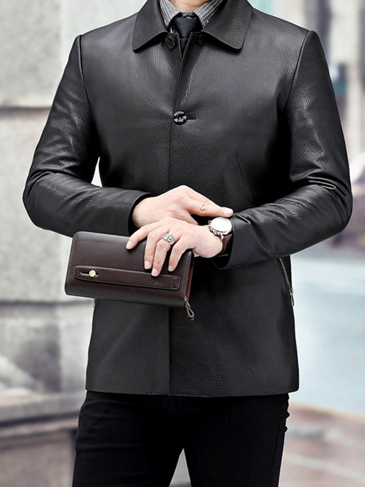 这款皮衣搭配商务休闲服饰,体现精英气质,衣摆平滑简约,上身干净利落,时尚兼具保暖效果。