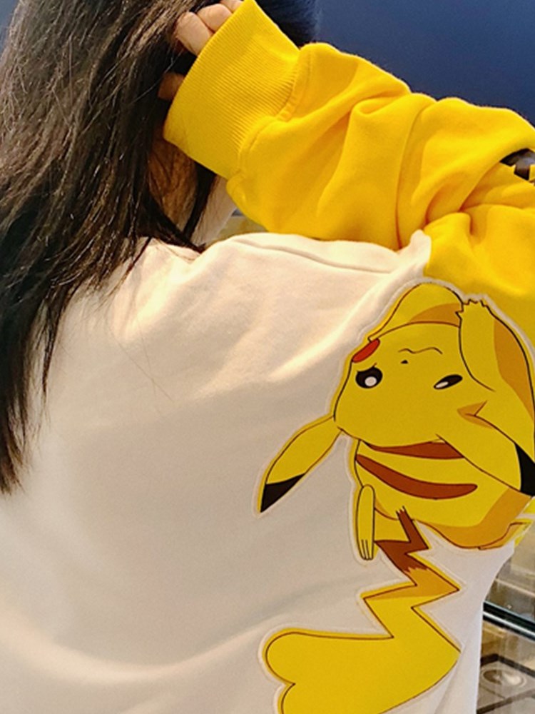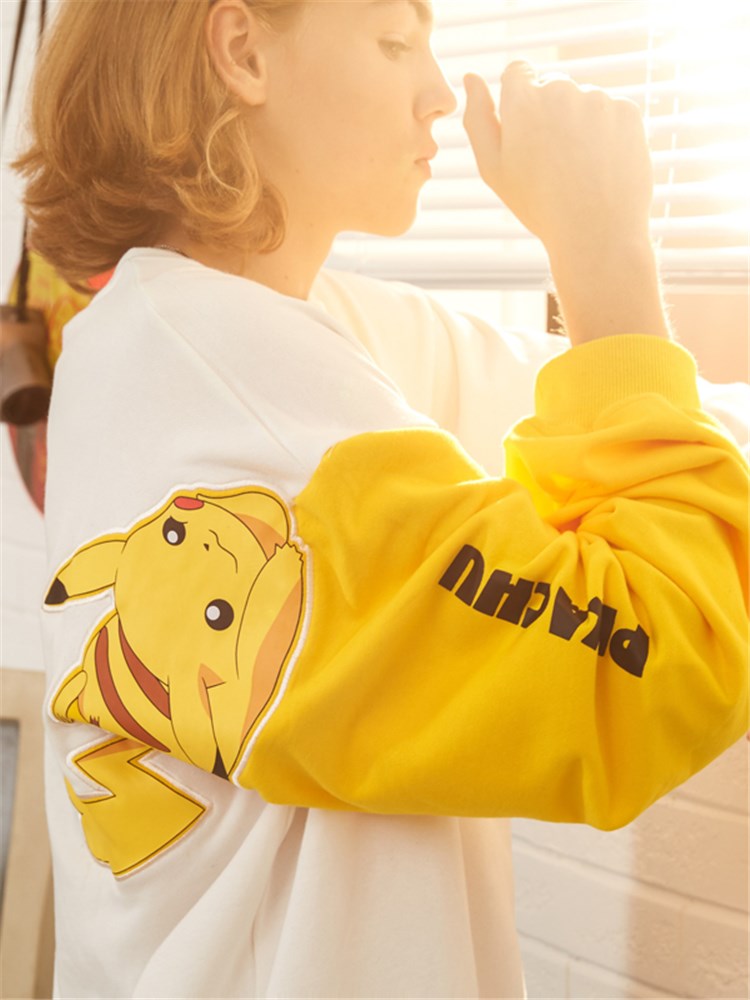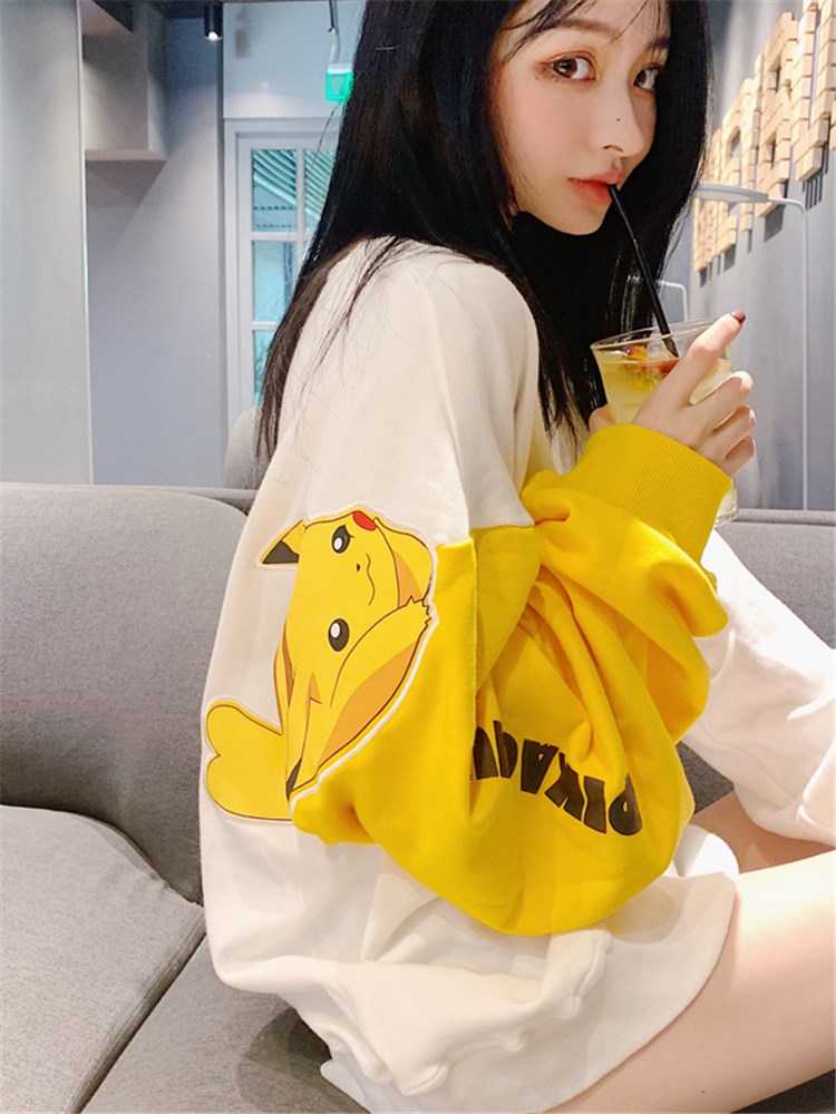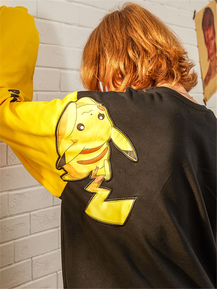 宽松卫衣,穿着舒适自在,创意印花设计,个性十足,皮卡通印花,俏皮感十足,撞色拼接设计,个性十足,联名设计,彰显品牌魅力。