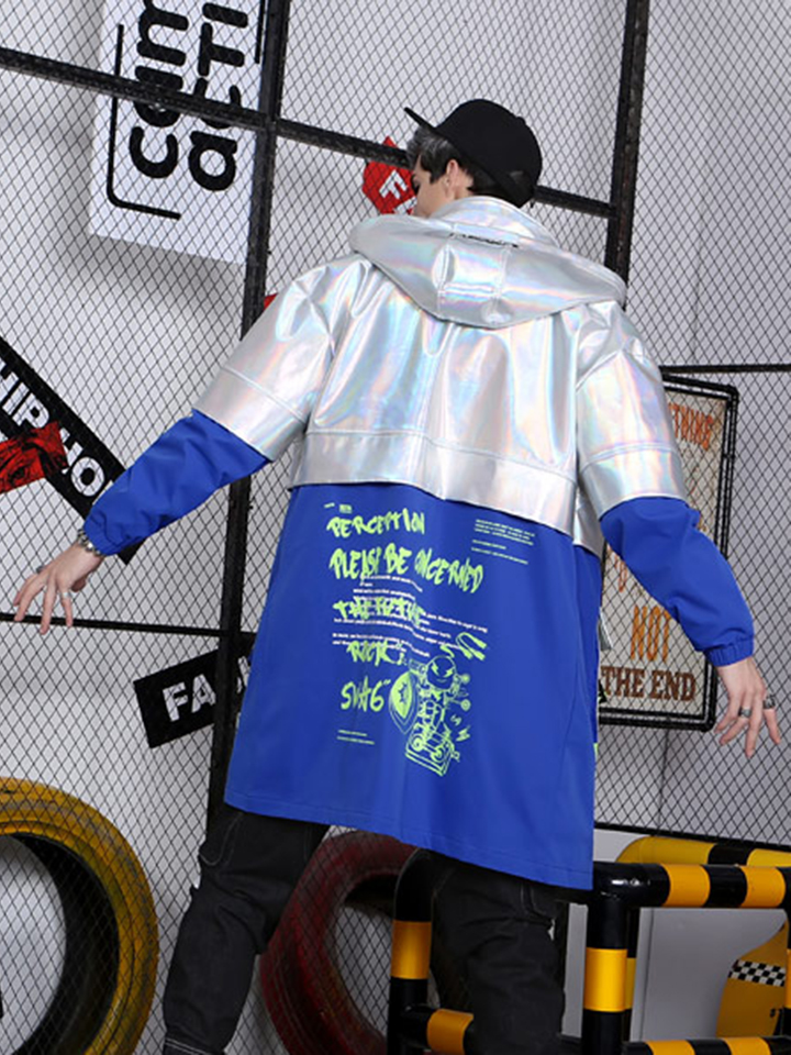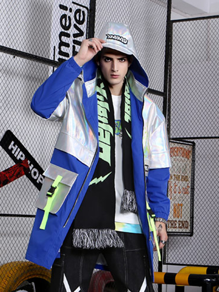 GENANX闪电潮牌的风衣,甄选质地轻薄的防水布料打造,衣身的撞色条纹与英文印花设计,带来极高的辨识度与潮流指数,时尚连帽设计与宽松剪裁,打造今季街头潮男形象。