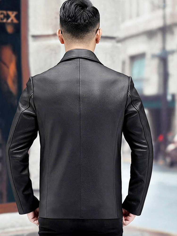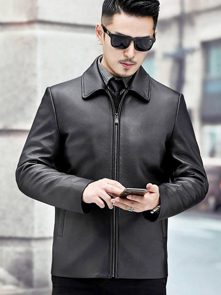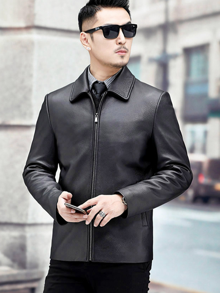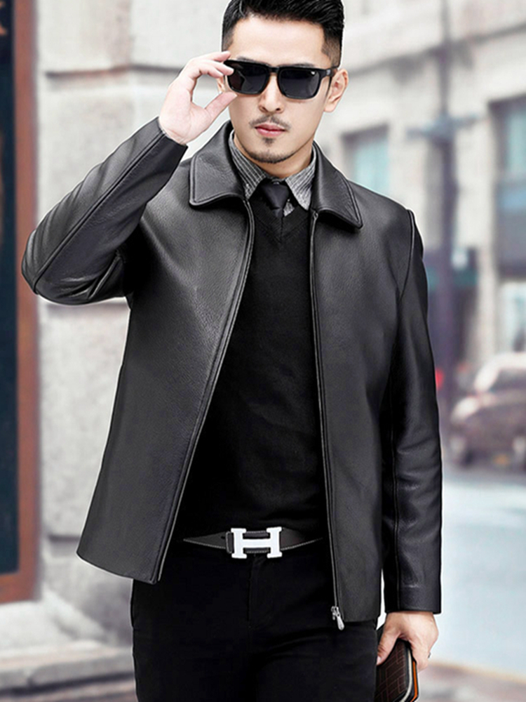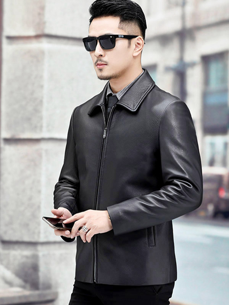 无论是送爸爸还是送老公这款真皮皮衣一定深受他的喜欢。利落的剪裁和优质的材质穿在身上尽显男士魅力。