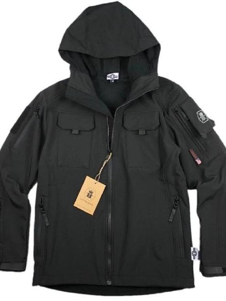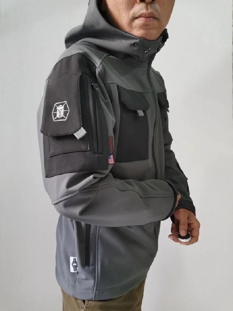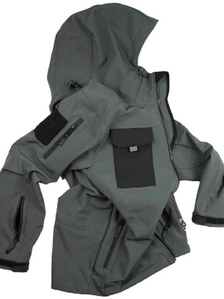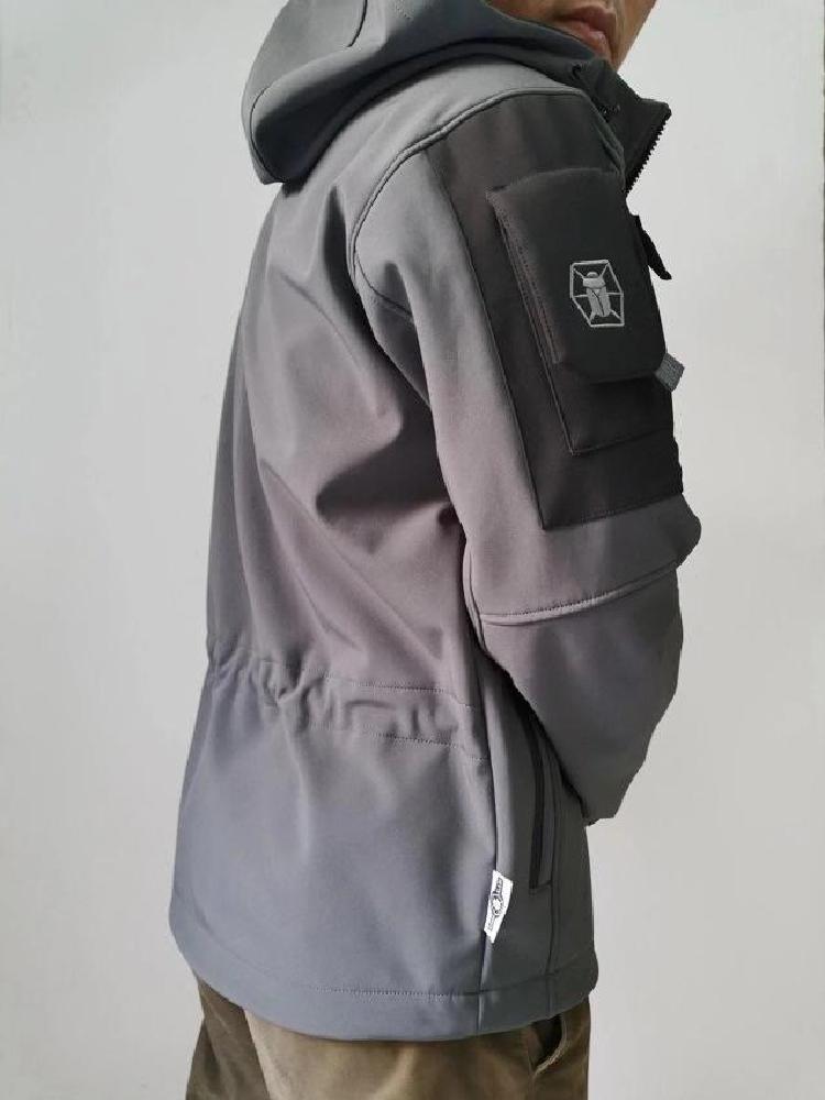 个性又帅气的一款鲨鱼皮软壳冲锋衣,外观非常出彩,能够很好的与市场上其它冲锋衣区别开来,彰显不俗品味。这款冲锋衣的版型经典,设计简洁大气,凸显户外动感气质,穿在身上活力满满。帽子的部分可以折叠卷起,又是一种穿着效果,极为有趣。