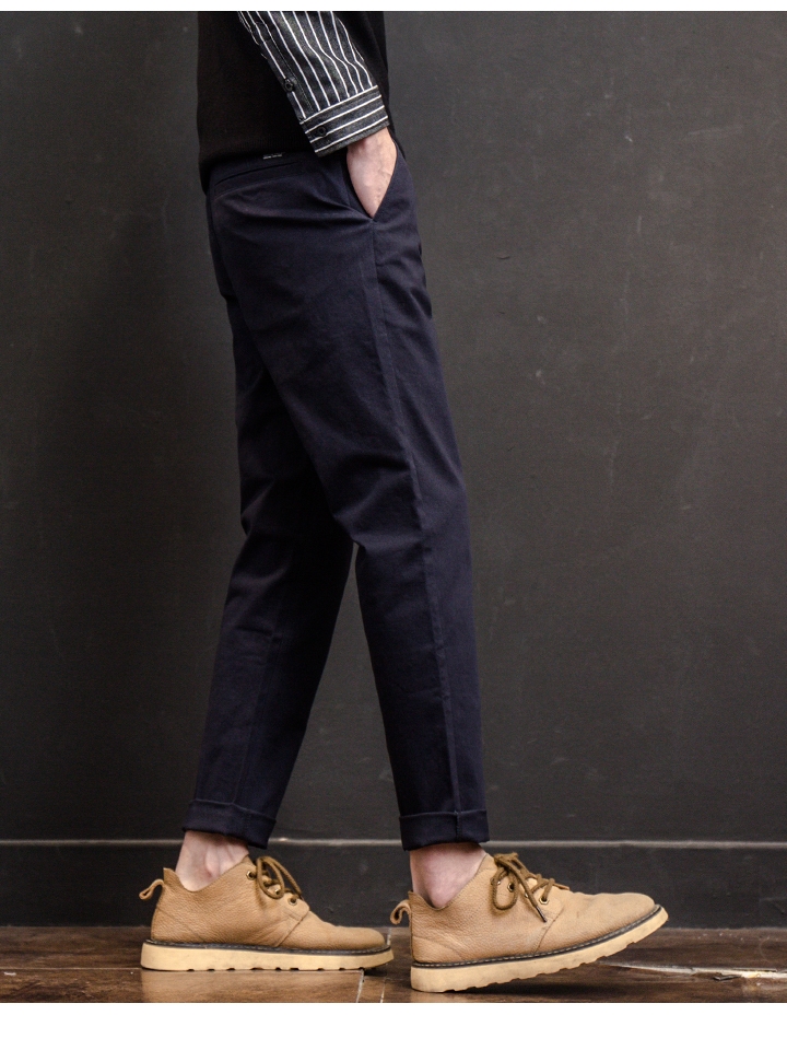 原创设计潮裤,欧美简约范,九分裤的裤长,展现男士的腿部修长线条,上身非常好看,百搭款推荐!3D剪裁设计,收腰修臀,修大腿,修小腿,拉长腿部线条,打造完美魅力型男。