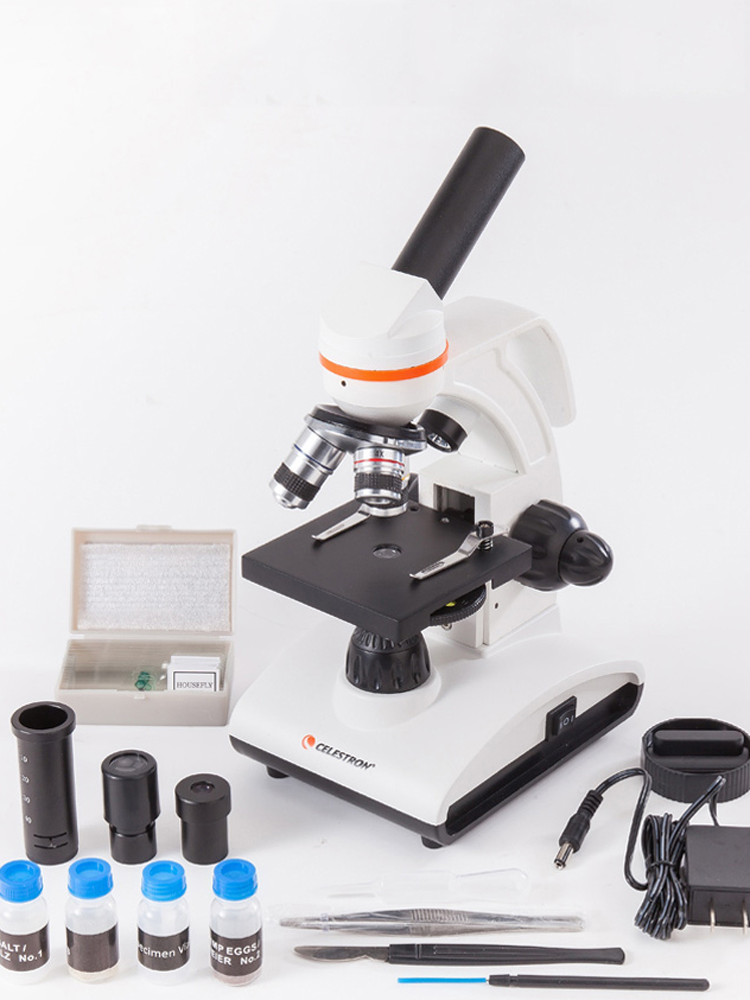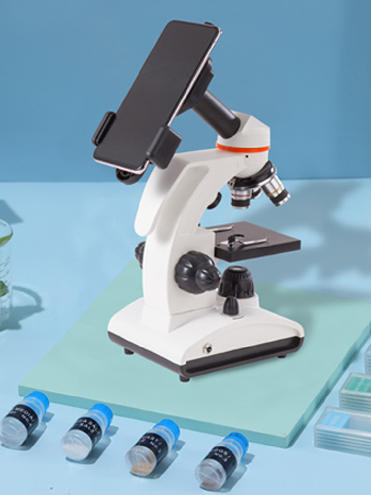 此款全金属专业显微镜,全光学玻璃,大视野,令观察更舒适。利用两种折射率不同的凸透镜及凹透镜胶合以达到消除色差的目的,成像效果比普通物镜更加清晰锐利。镜筒按照人体工程学设计成45°倾斜,观看姿势更加舒适,同时镜筒基座可360°旋转,任何角度都可观看。还可以连接手机,用手机记录细微世界。
