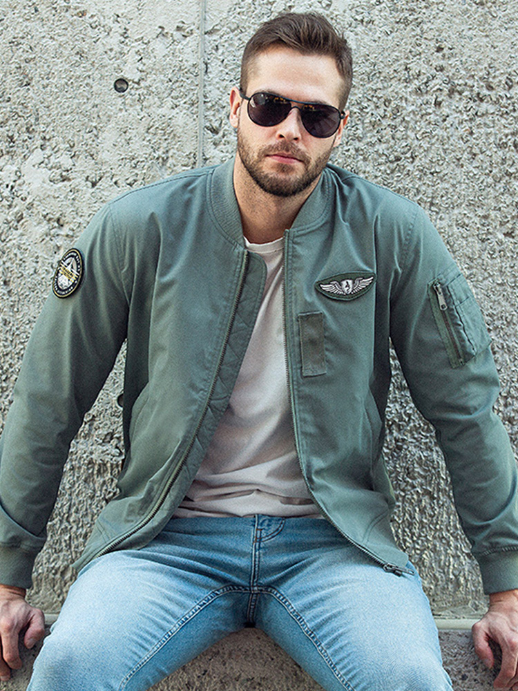这款夹克外套,棒球领的领口设计,能够很好地修饰颈部线条,呈现男性时尚气质。而魔术贴的修饰,丰富了衣身的视觉表现,美观效果佳。