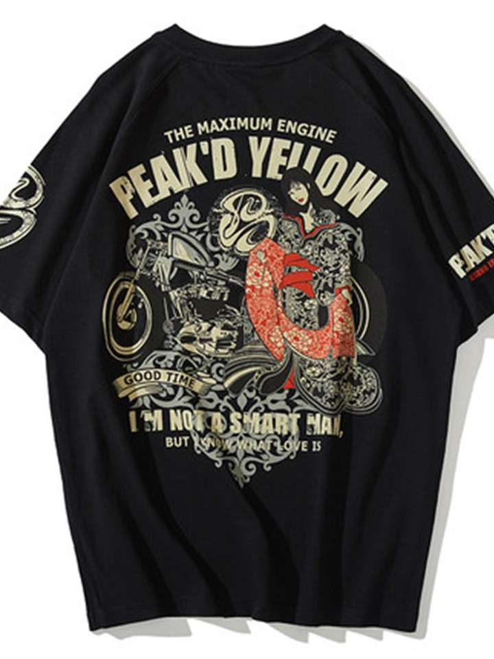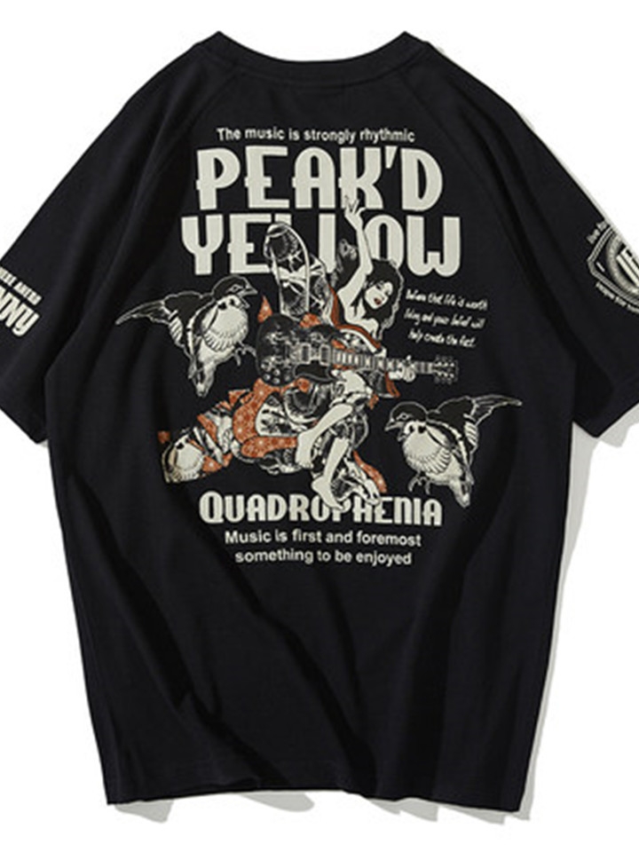 简约大方的圆领,勾勒颈部优美的线条。日系印花图案点缀,轻松达到吸睛效果。优质纯棉面料,打造舒适的穿着体验。