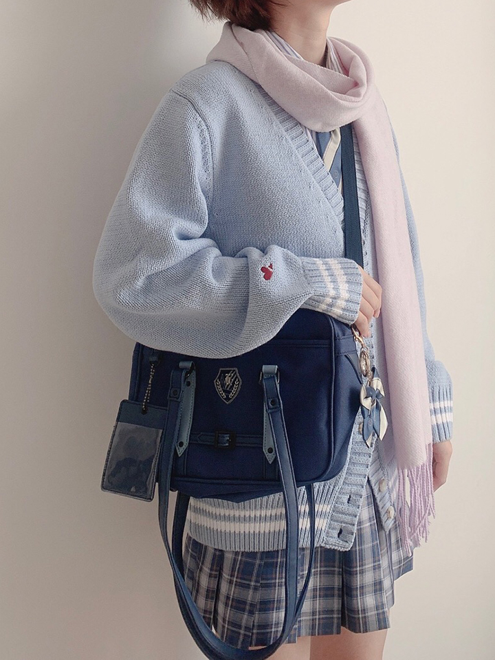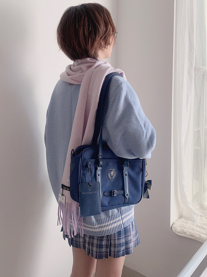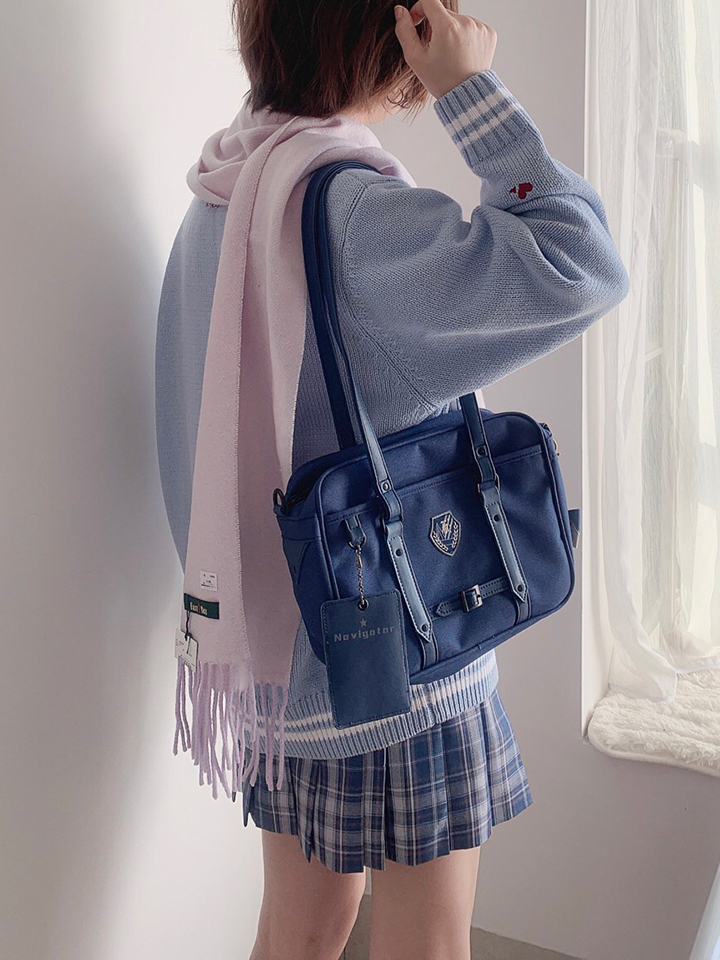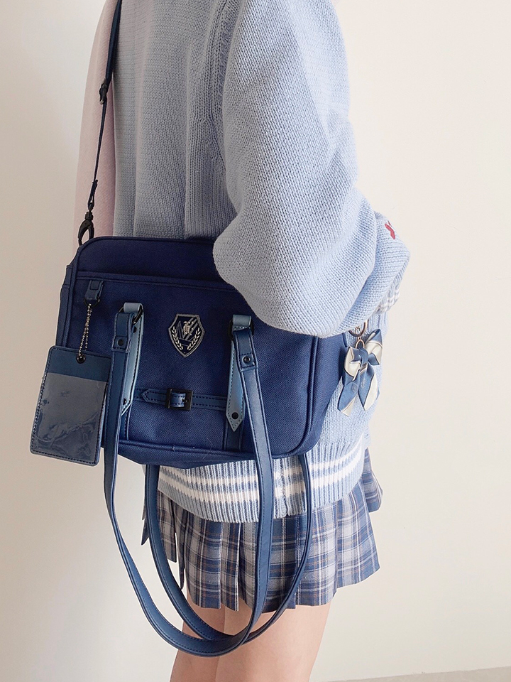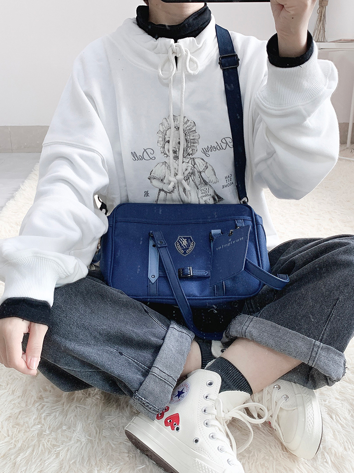 这款日系学院风格单肩斜挎包,有点类似邮差包的款式,背在身上减龄鲜嫩,这款包包很实用,也可以手提,男女都可以用。