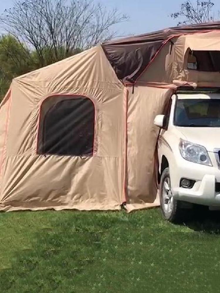车顶帐篷,帐篷是专门设计在车顶使用的,高地性设计,可以更好的避开地面的潮湿环境,以及突袭而来的水流等等,使用方便安全。