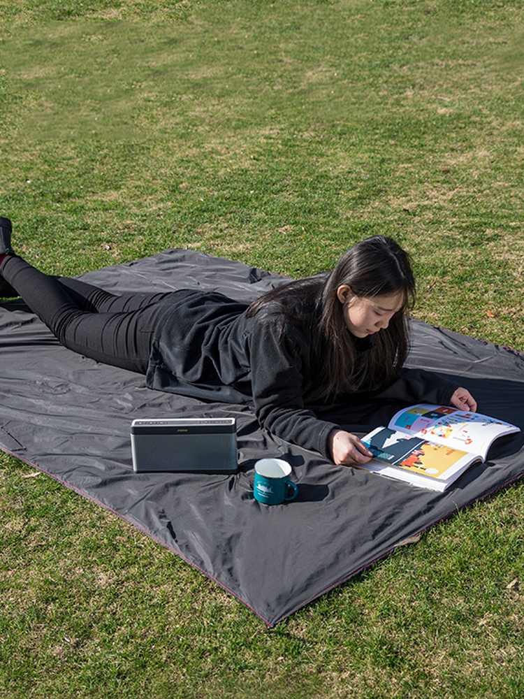 超轻双面防水口袋地布,随身携带方便,不用的时候可以折叠起来,如果你是一个很手巧的人完全可以折叠成口袋的大小放在口袋里,非常的方便,面料是防水防潮的双面涂硅格子布,非常的结实透气哦。和女友出去玩的时候有了它简直是方便的不得了。