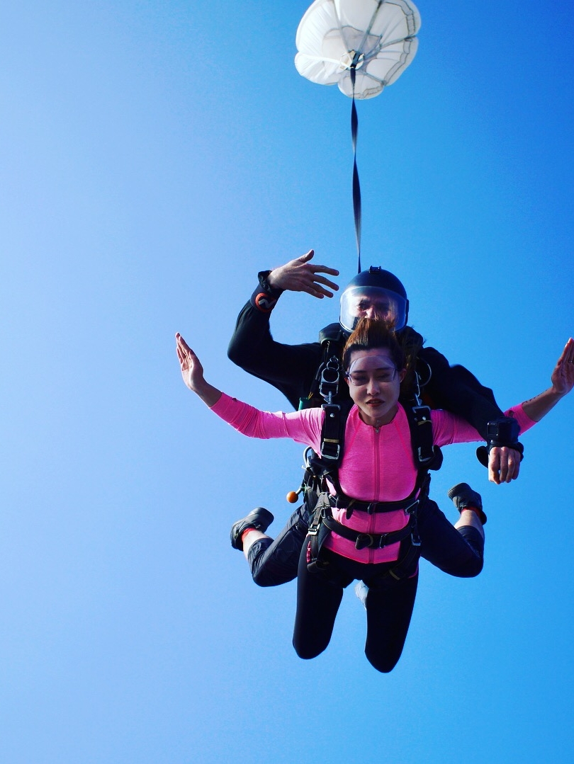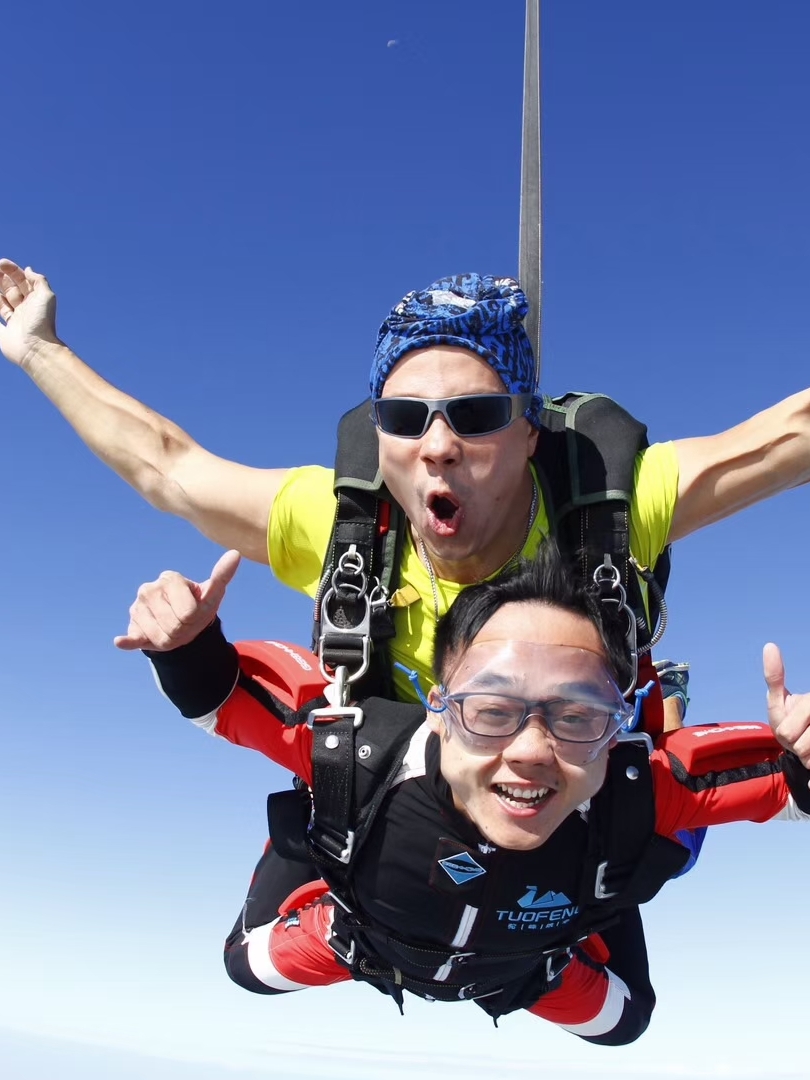 这款跳伞有专门的教练一对一辅导,保护你的安全,非常安全。