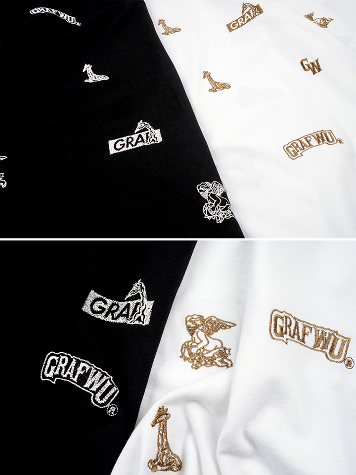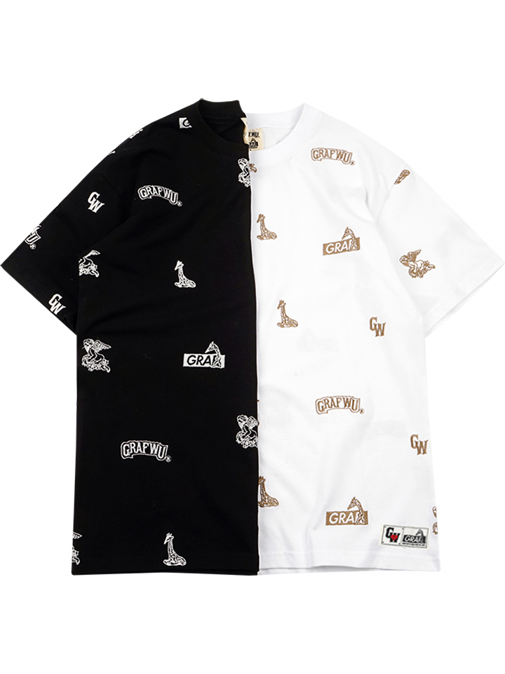 处处彰显品牌文化理念与特色的T恤,很好的将自身的文化贯穿到衣身,提升了辨识度。满版的logo搭载长颈鹿的图案更是标新立异,分分钟吸引了看点的同时,更是尽显休闲氛围感,黑白配色更是轻松搭配。