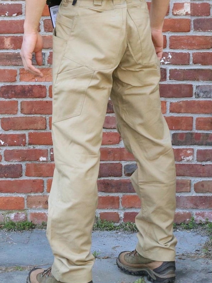 卡其色的裤子看起来修身简约,在春秋季节搭配一件黑色的上衣穿着非常时尚,可以体现商务和运动两种气息,总体设计简约时尚,潮男必备。