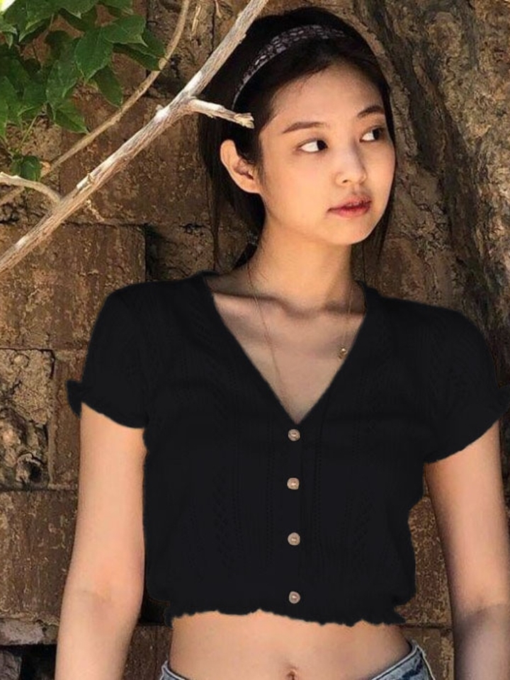 性感的短款上衣呈现出了北欧风情,又能够露出纤细婀娜的腰肢带来撩人诱惑的气息。性感的V型领口让锁骨线条更加的精致迷人。