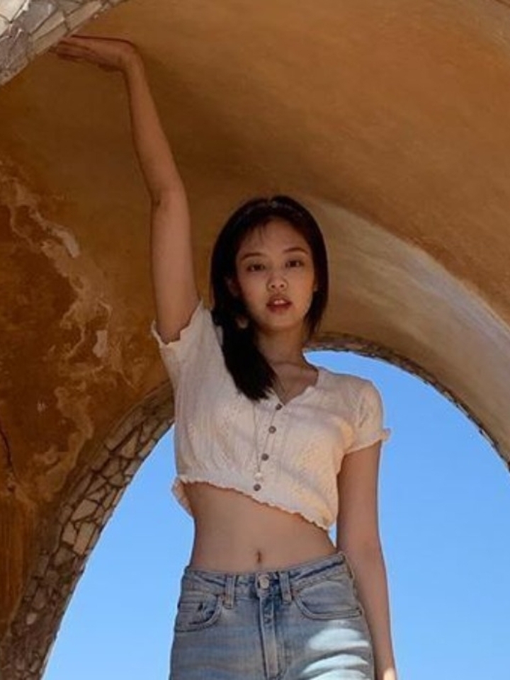短款的针织上衣在下半身搭配上一件高腰的牛仔裤,可以说是小个子女性的最爱搭配,带来少女热情明媚的风情更加吸引眼球。
