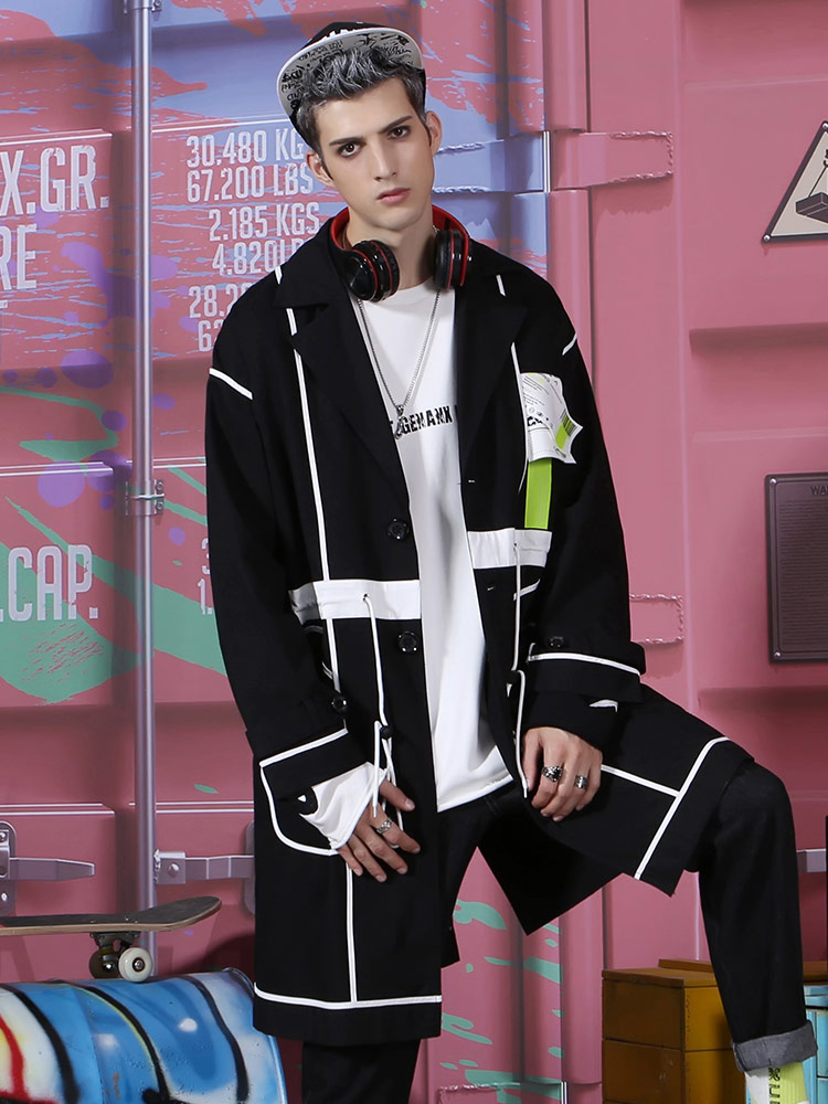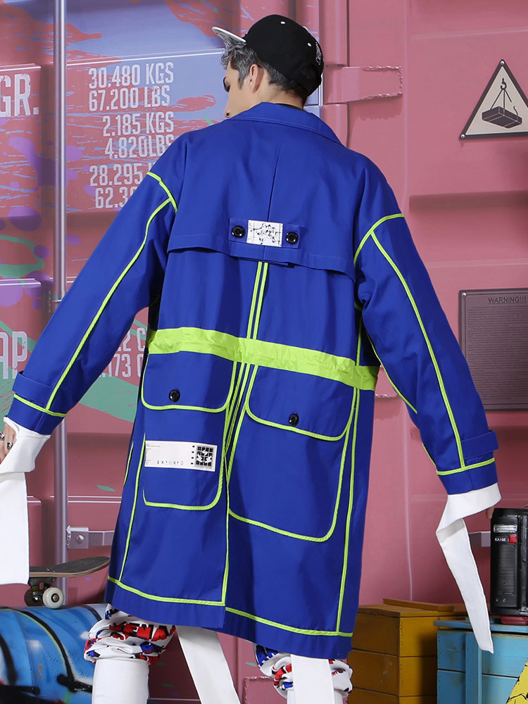创意多口袋风衣,融入工装的多口袋风格,不仅正面多个立体口袋,更在背部特别添加大口袋设计,个性十足,点缀撞色拼接,更添时尚看点,中长款设计搭配军绿配色,挺括硬朗,帅气十足。