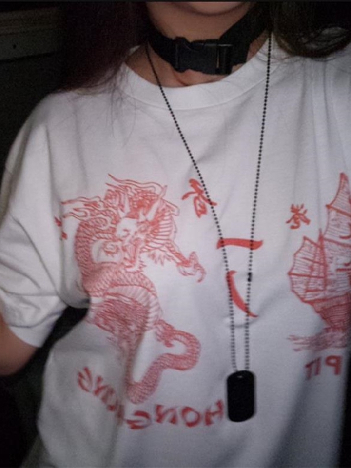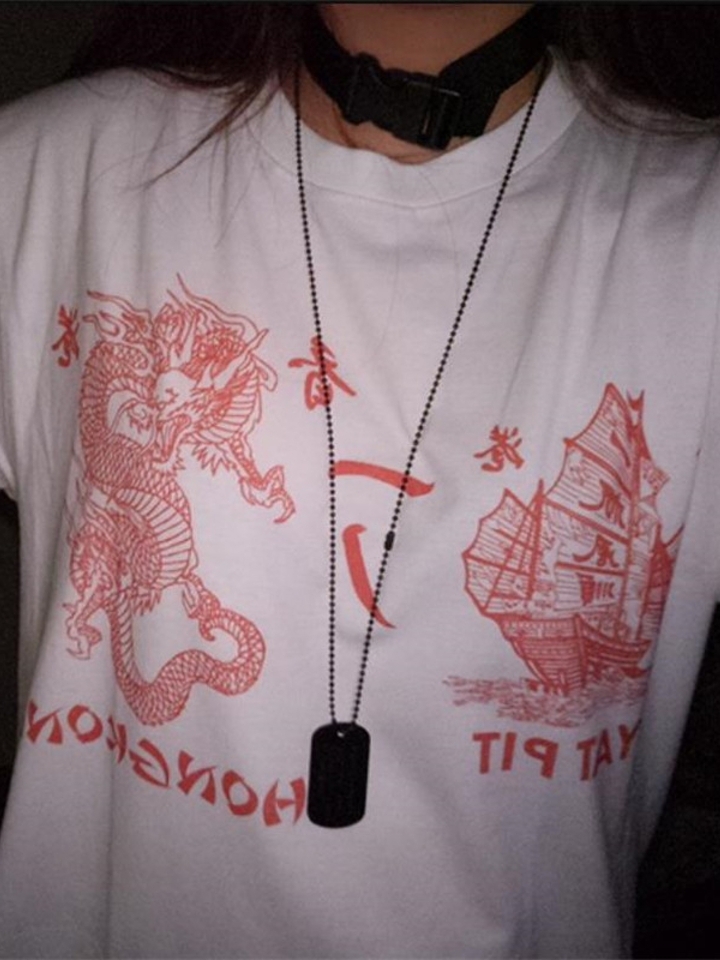 这件T恤采用了当下流行的Oversize落肩版型设计,大面积的印花元素的运用,彰显个性,赋予衣物复古质感。棉质的面料舒适透气。