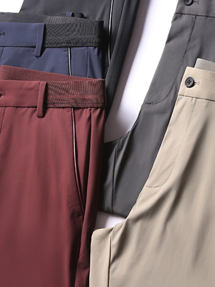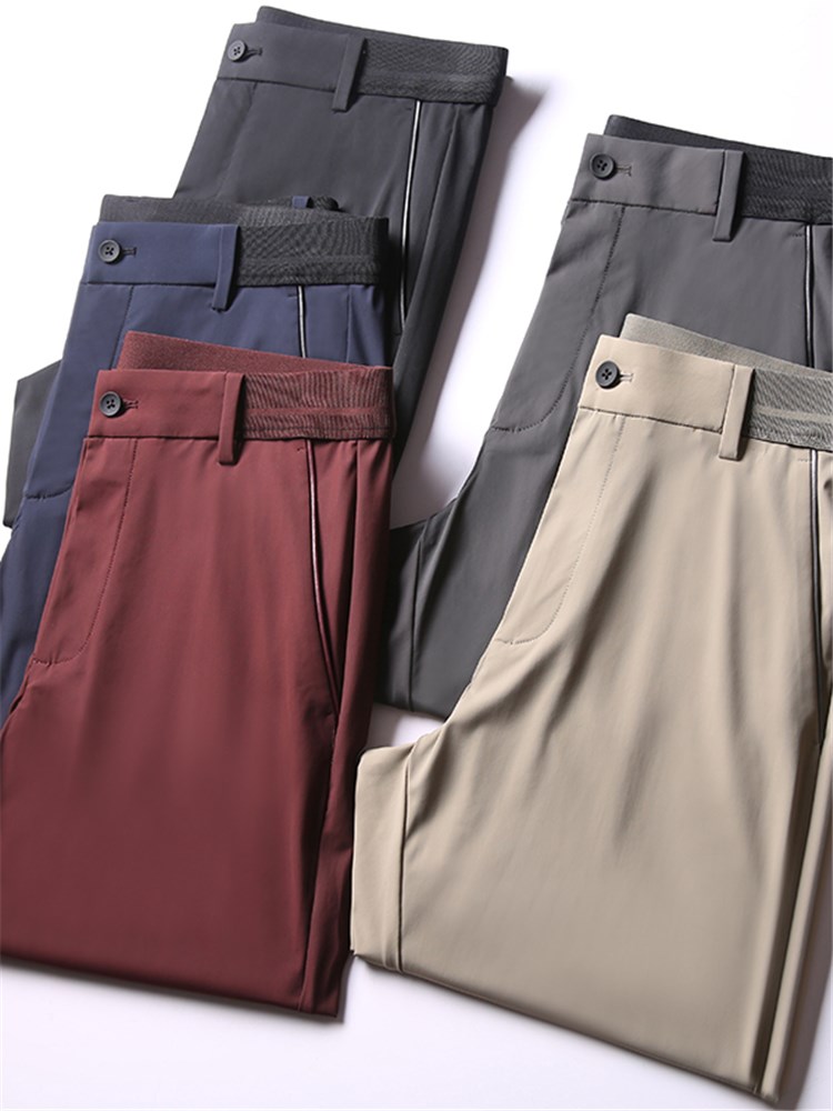 裤子拉链设计,方便穿脱,商务风格,绅士范儿十足,精选优质面料,舒适透气,四面弹面料,舒适不紧绷。