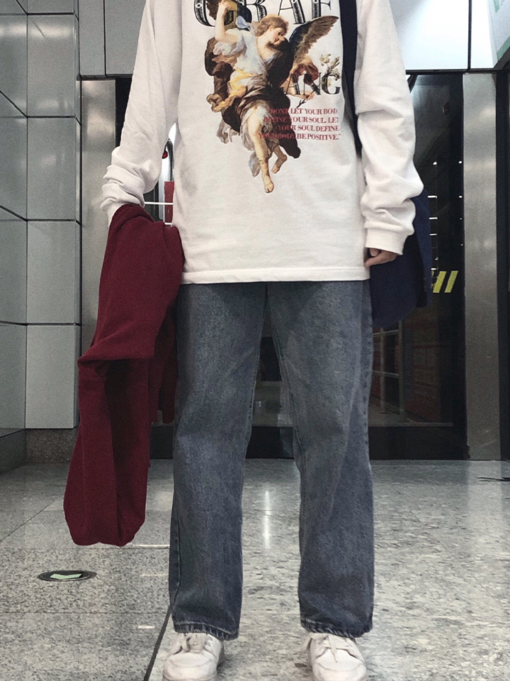 这款衣服的潮流休闲风格可以与各种服饰进行搭配并且显得随意自然,在裤子穿着方面可以穿着一条蓝色浅色牛仔裤,鞋子可以穿着一双白色运动鞋。这样可以搭配出自由休闲的风格。