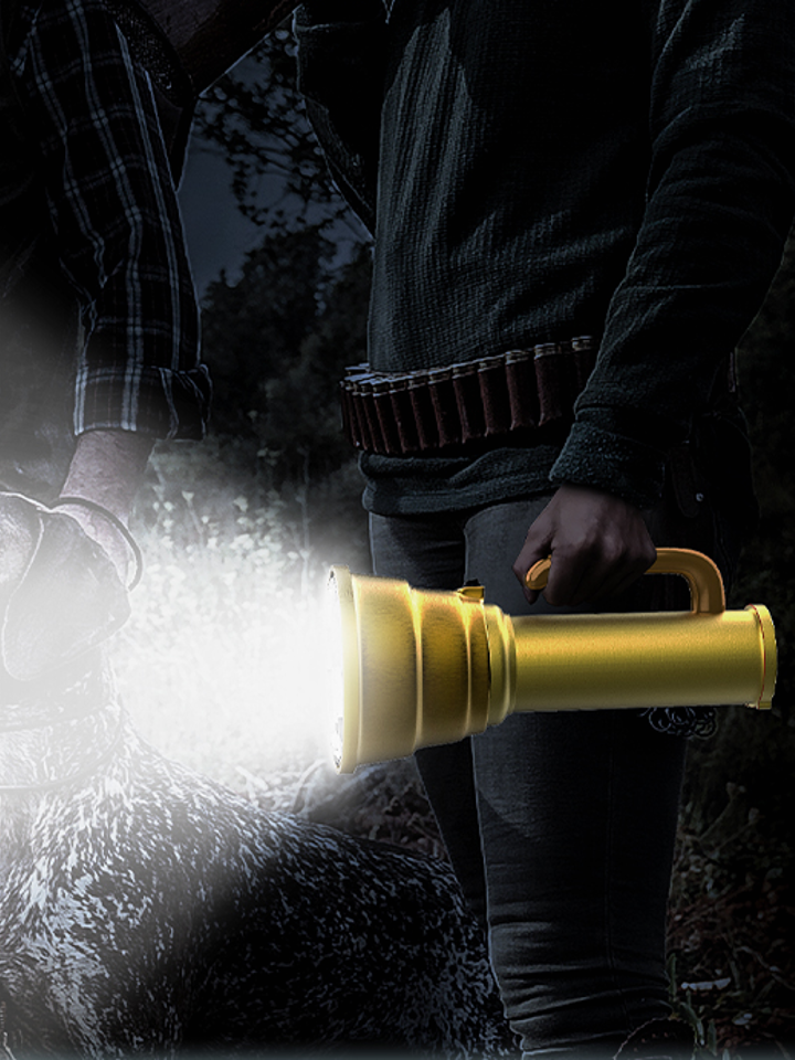 大功率LED强光手电筒 最新一代的大功率LED探照灯,采用三个100w大功率LED芯片,配合大口径聚光反光杯使其光束更集中、射程更远、有傚地提高了照射范围和距离。本灯采用12v5AH的大容量的全密封免维护蓄电池容量超强放电时间长,充放电循环次数可达500次以上。本产品外形设计美观、使用方便、数码调光`安全耐用等特点。