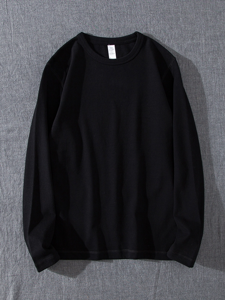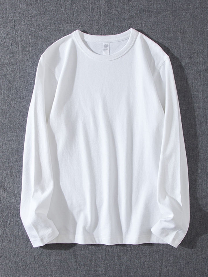 这是一款样式非常简约的长袖T恤,没有其他装饰与点缀,看起来非常简单,经典的休闲风使它有着较为宽松的版型剪裁,上身舒适自如,还能穿出多种时尚风格。