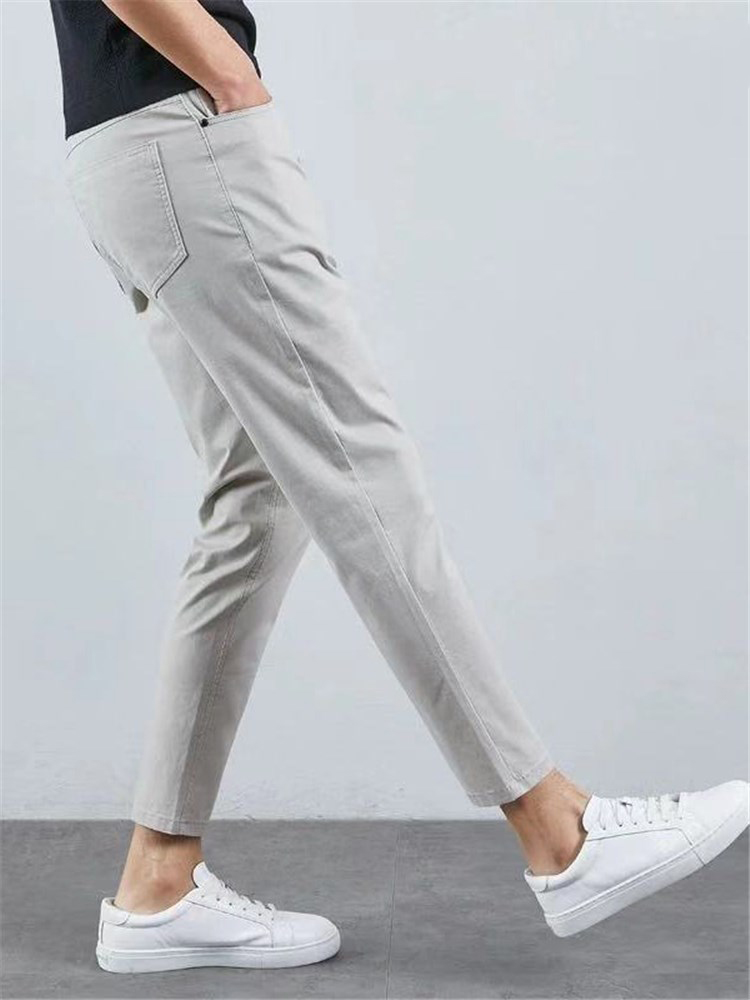 休闲裤型,穿着舒适自在,小脚裤型,修饰腿部线条。