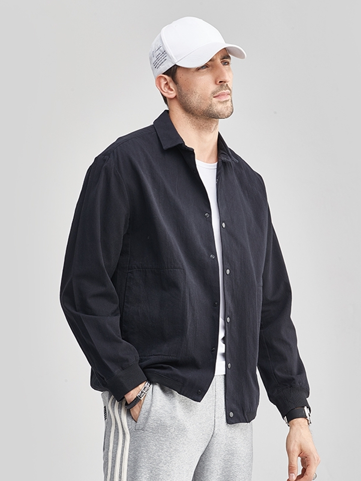 这款夹克外套选用了舒适的面料,手感舒适,透气性好,光滑有质感。