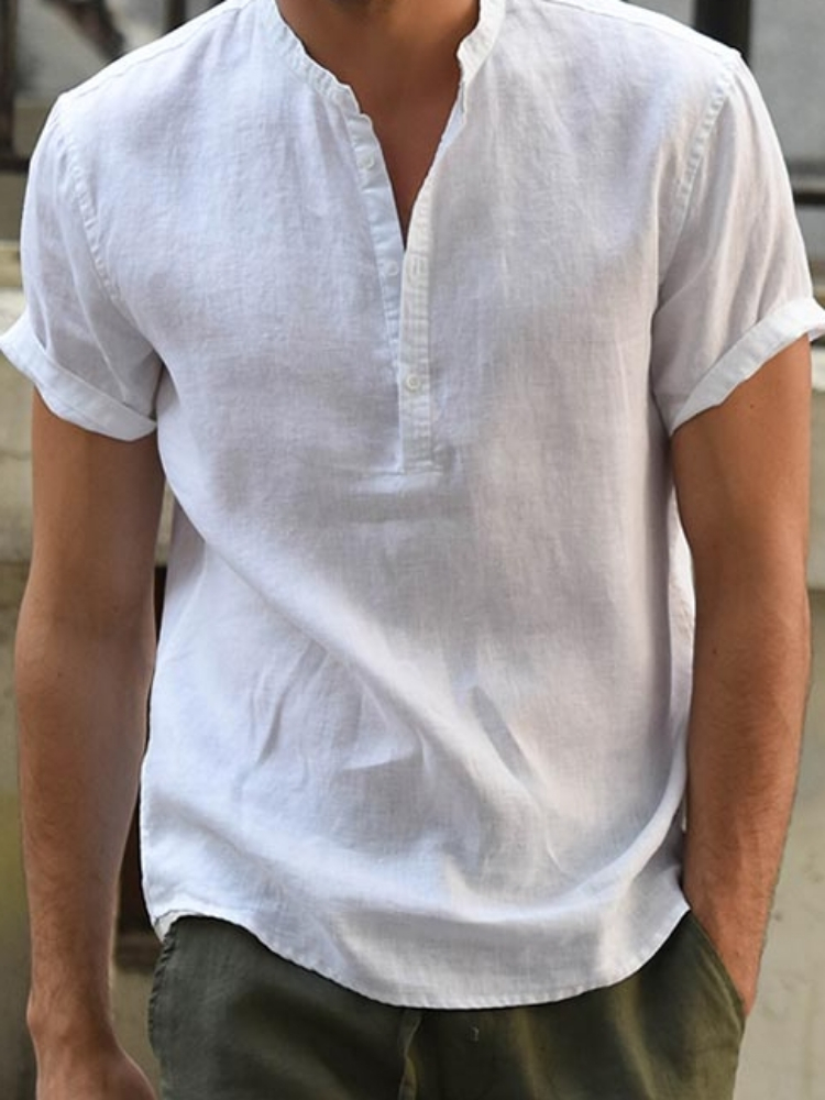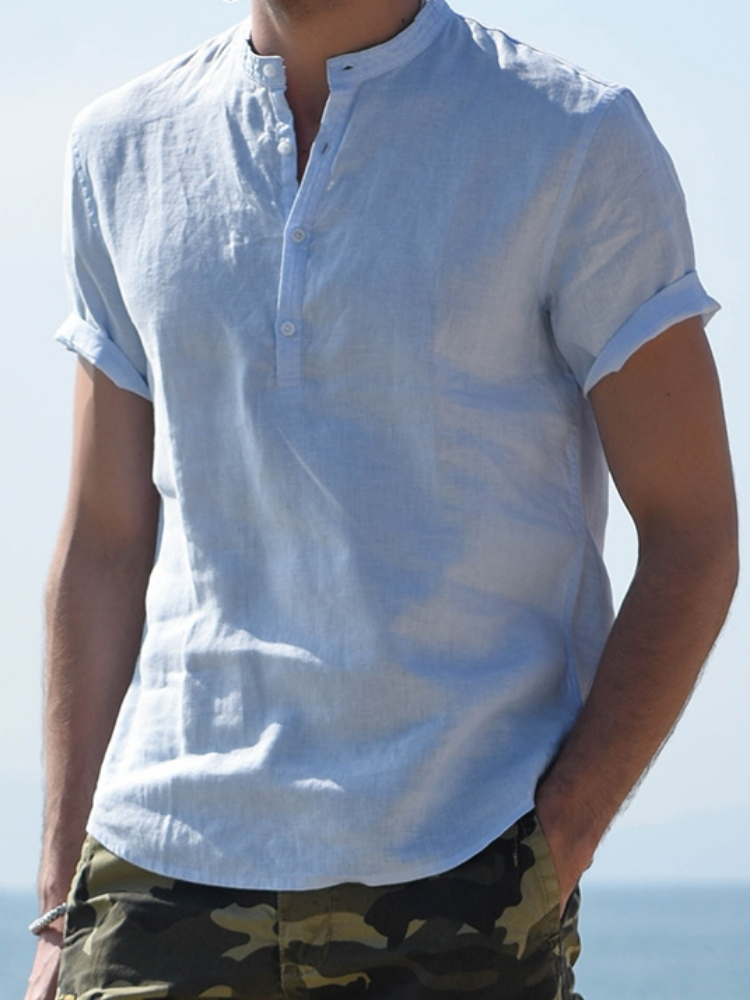 纯亚麻面料清爽透气且质地舒适,有质有感,易洗易干,面料光泽度好,清新自然。修身合体的版型,给人简单舒适的穿着体验。简约的款式,经典大气,上身非常,阳光帅气,显得时尚有个性,搭配休闲裤长裤都好看。