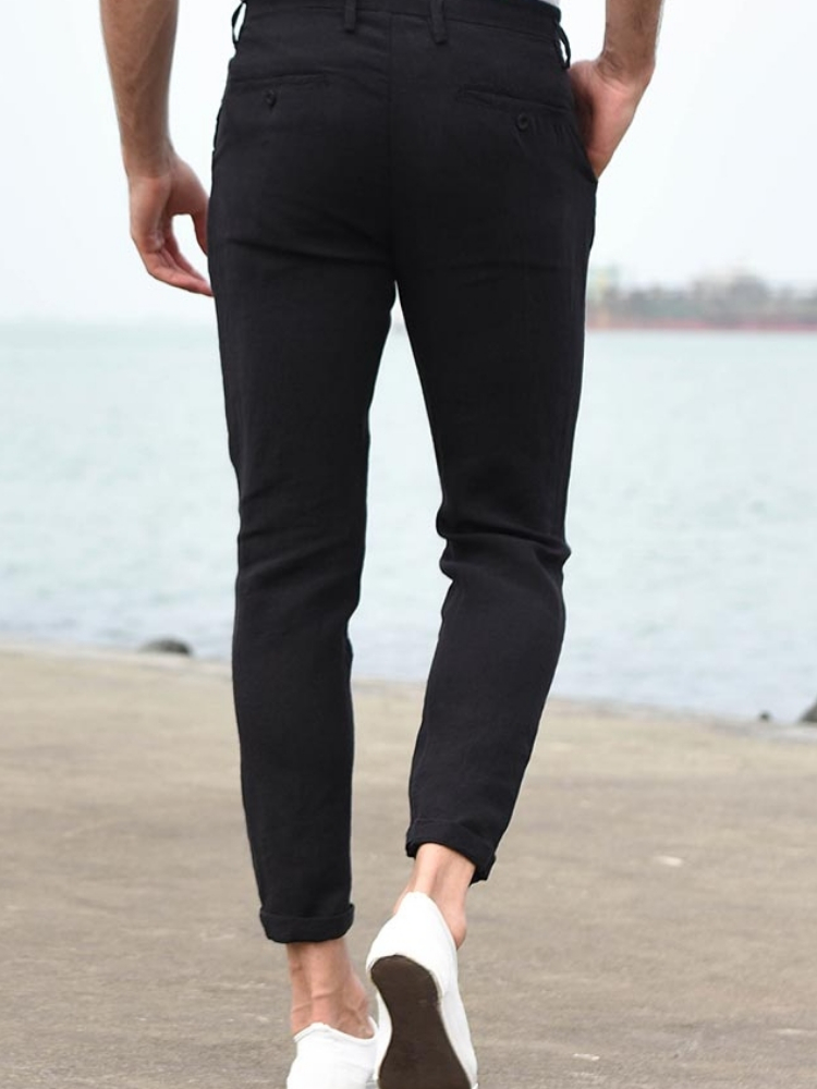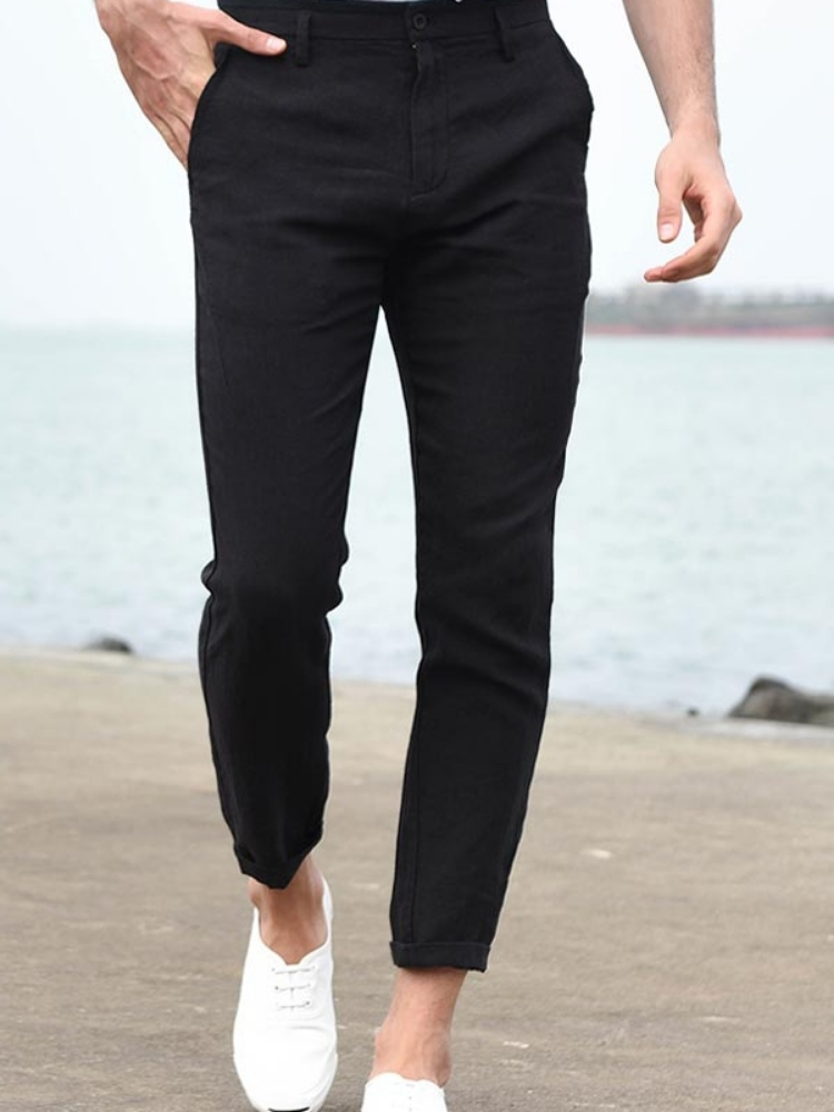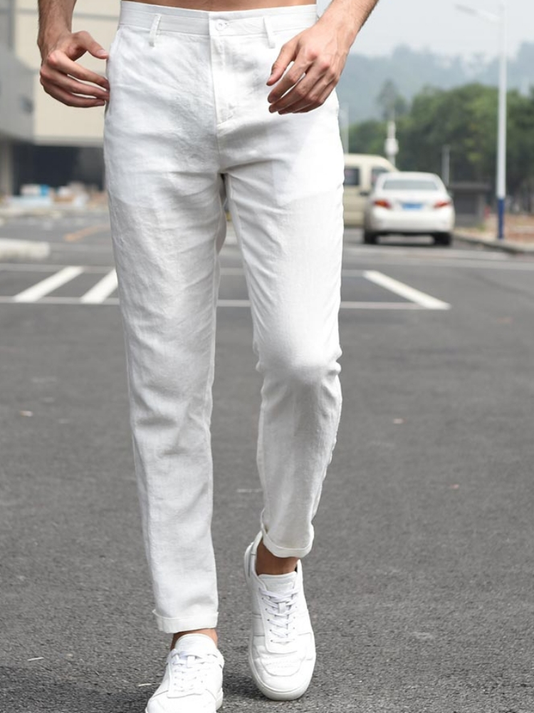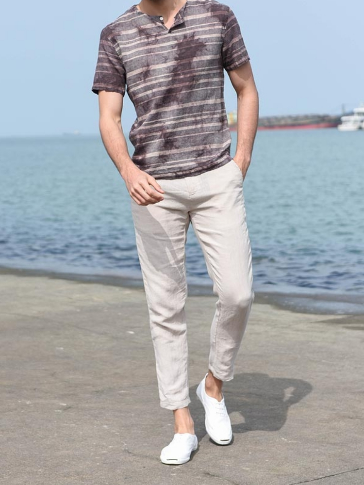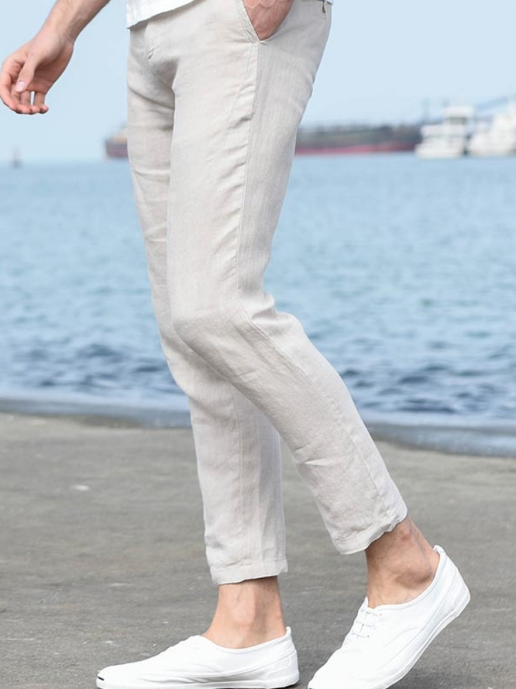 优质的亚麻面料,质地柔软,透气性好,加上时尚设计,细节凸显理念。经典的配色可随意百搭。简约而不简单的设计,给你不一样的搭配体验。采用立体裁剪,穿着舒适有型。修身的裤腰拼接罗纹设计,自然舒适。