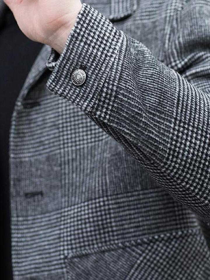单排的纽扣搭配,实用贴心,使整款的外套显的不那么沉闷,带有浓郁街头气息。