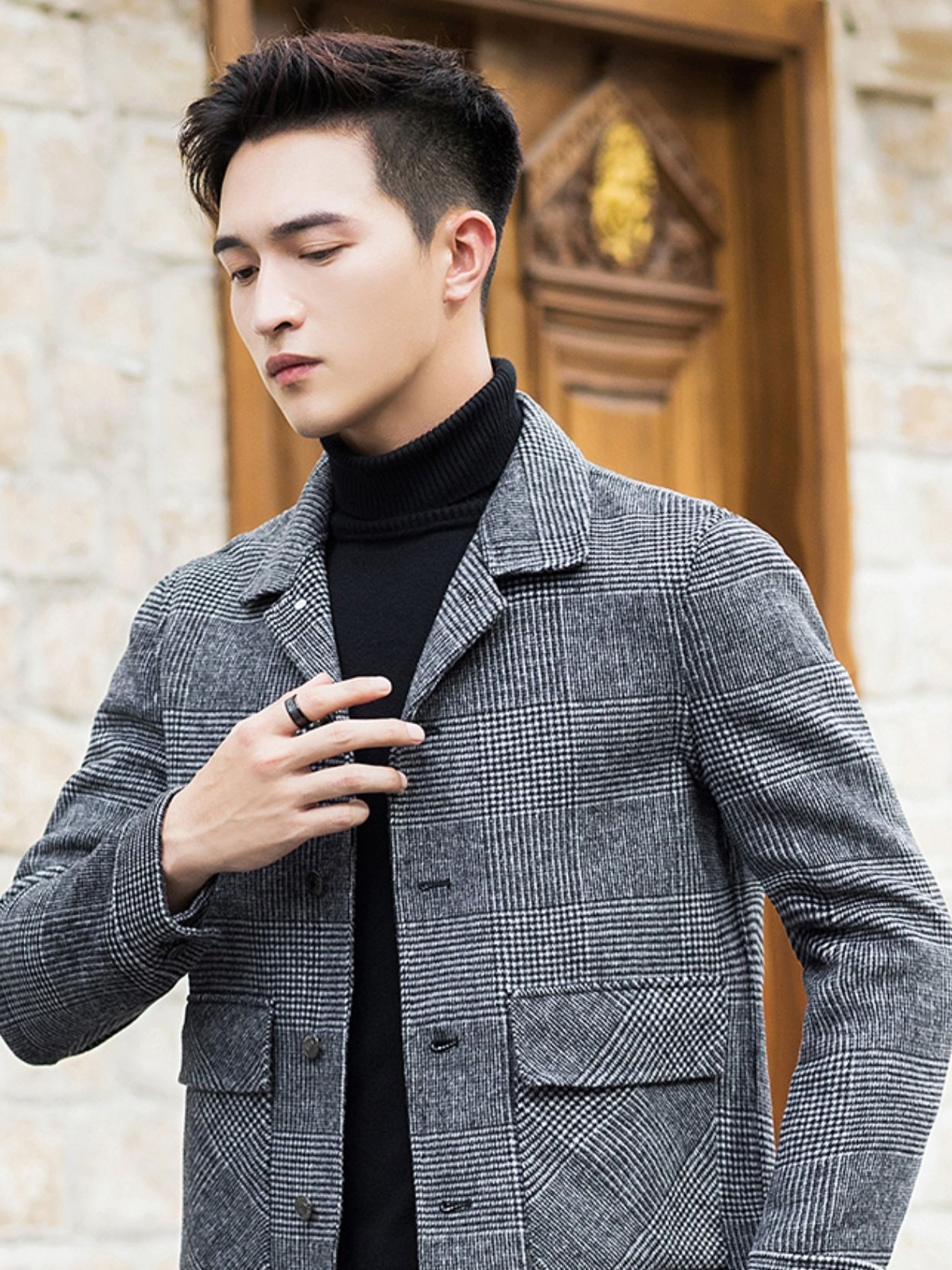 夹克外套的面料比较细腻,柔软且舒服穿在身上不会有那种捂热的感觉,秋冬季节穿非常的合适,短款版型上身效果很赞而且不挑身材,青年男神的不二选择。