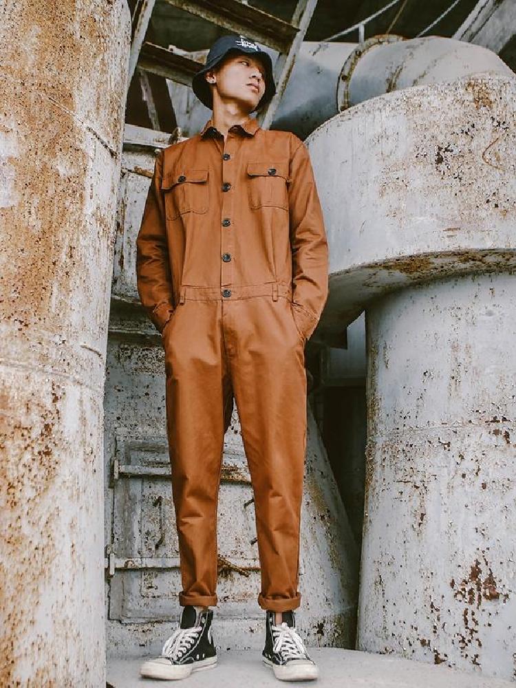 宽松版型穿着舒适,翻领结合胸前口袋的设计凸显立体的有型感,搭配上建议下装选择一条与上身颜色相近的同样是工装风格的休闲裤,脚踩一双白色的跑鞋,再以一定渔夫帽结尾,打造时尚原宿风格。