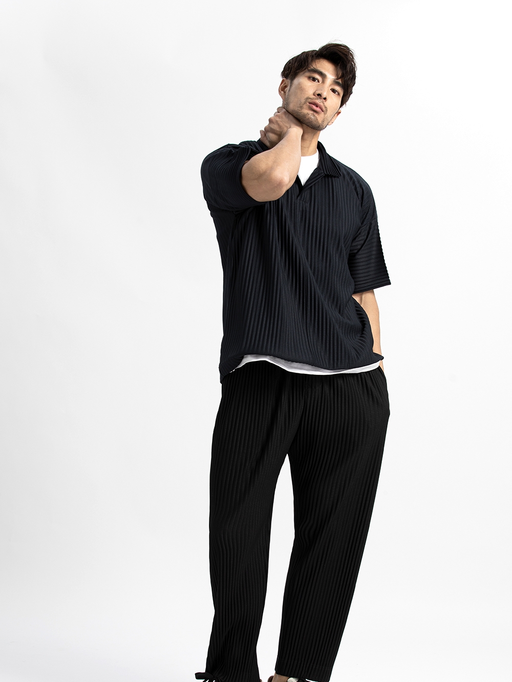 打破传统的衣领设计,印花镶边,充满了时尚品味,严格按照男人身体曲线剪裁,修身有型,时尚立体褶皱设计,体现不一样的潮流味道。