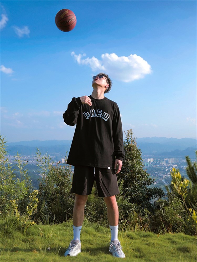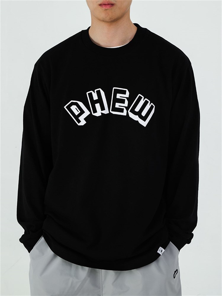 圆领长袖,修饰手臂曲线,圆领设计,彰显男士魅力,宽松版型,穿着舒适自在,简约款式,让你轻松驾驭,印花设计,增加衣服亮点。