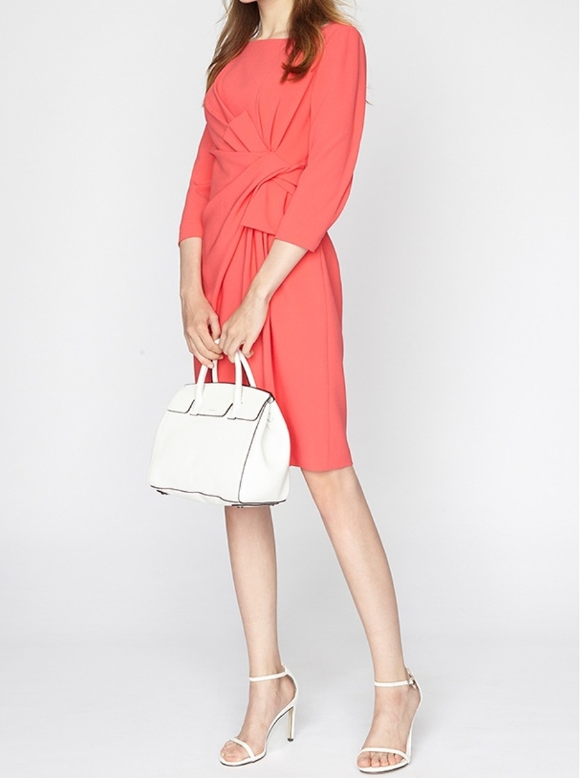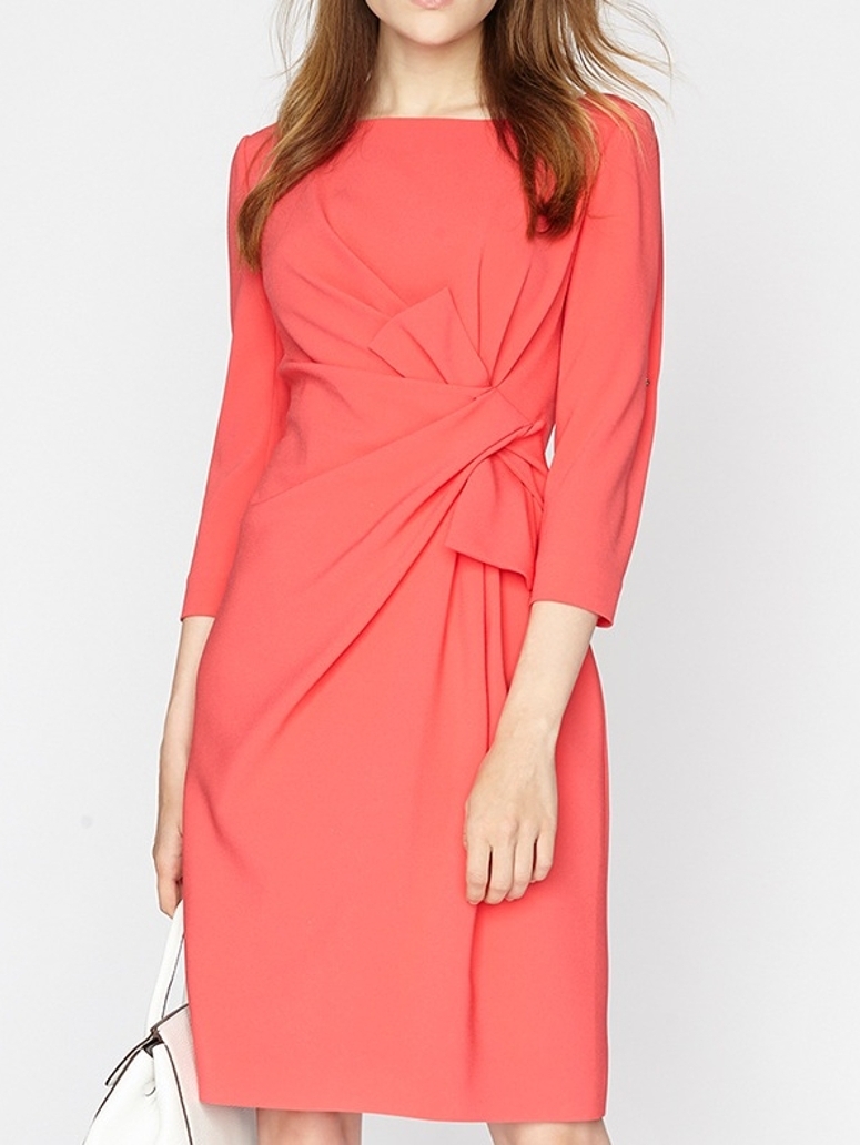 收口设计方便手臂活动。酒红色调,衬托出女性高贵典雅的气质。独特压褶收腰剪裁,使服饰穿着更能展现出性感的身段曲线。
