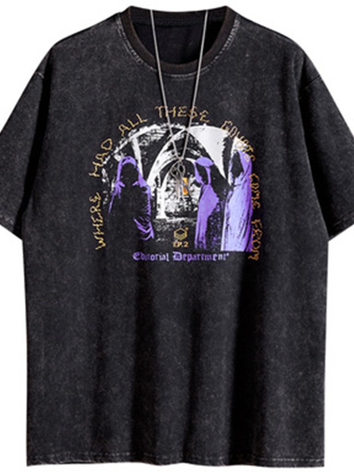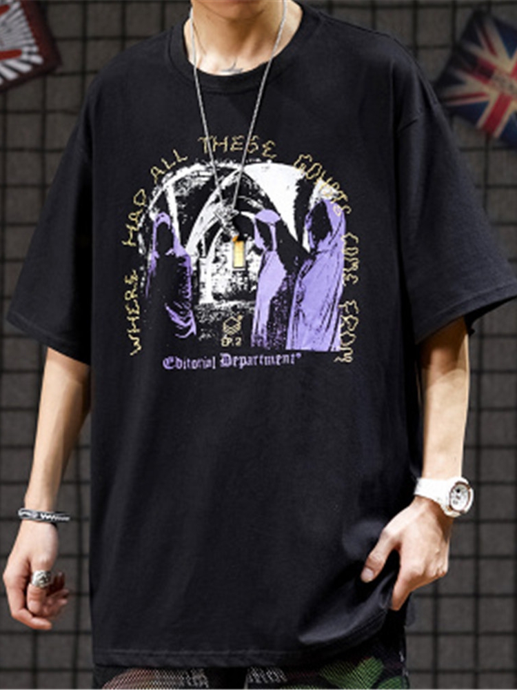 这是一款欧美风格的印花短袖T恤,充满了嘻哈的活力感。它不但时髦易搭,并且有着不错的减龄作用。选择水洗小脚工装裤,保持色调的协调性,从而体现我潮酷潇洒的街头潮男形象。