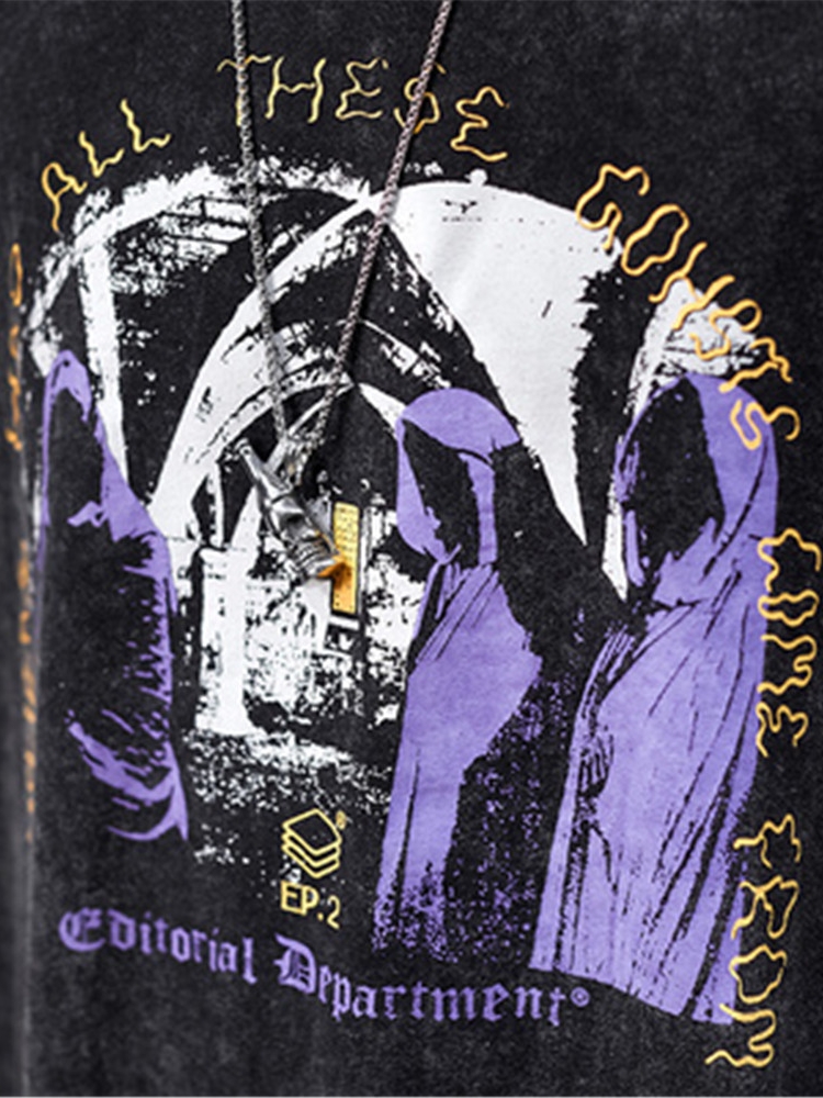 宽松短款版型的设计潮流时尚,衣身欧美风印花图案的点缀顺应当前的流行趋势,凸显潮流风范,展现青春活力与阳光朝气。落肩的设计感强,车缝线极为缜密细致,细节把控的恰到好处。