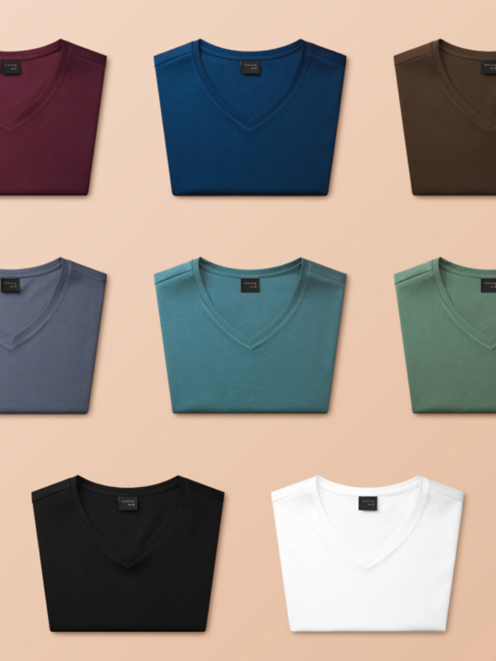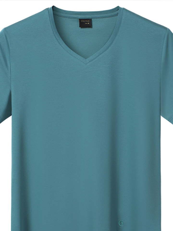 净版纯色T恤,突出简约的清新设计感。结合利落的合体衣型,打造出干练率性的商务休闲风格。V领口的加持,给人以青春肆意的感觉,突出时尚的都市风采。