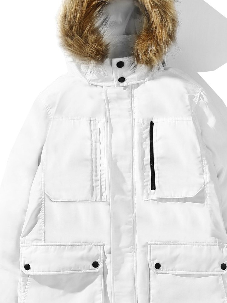 这款羽绒服采用优质的面料,手感柔软舒适,保暖效果好,连帽设计,防风保暖,内里填充优质白鸭绒,保暖性好。