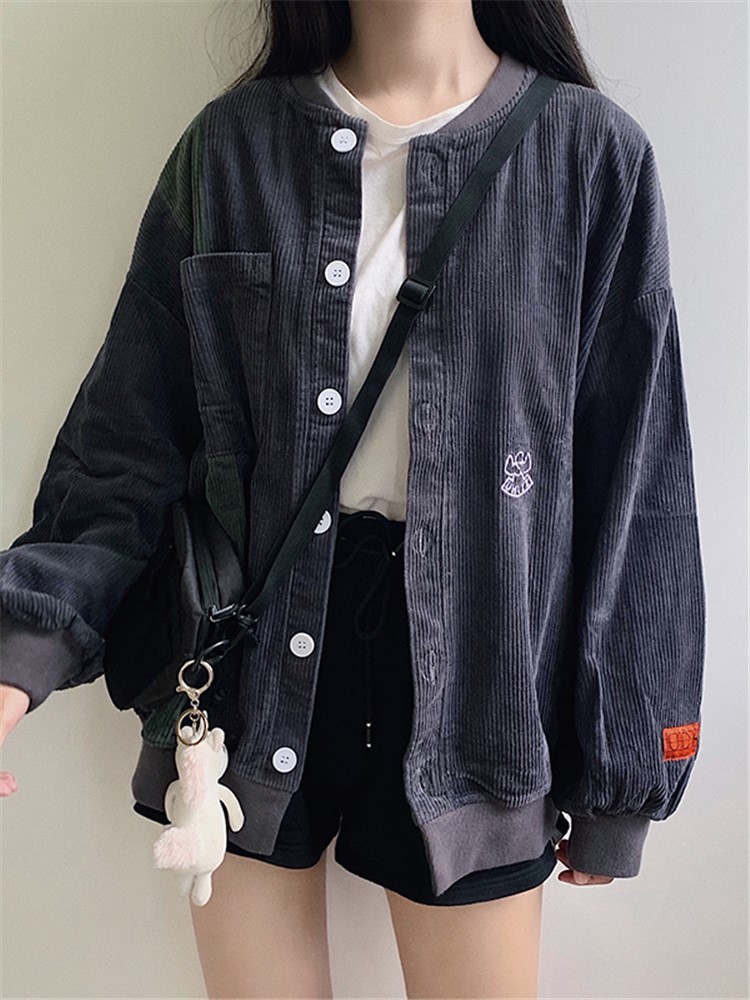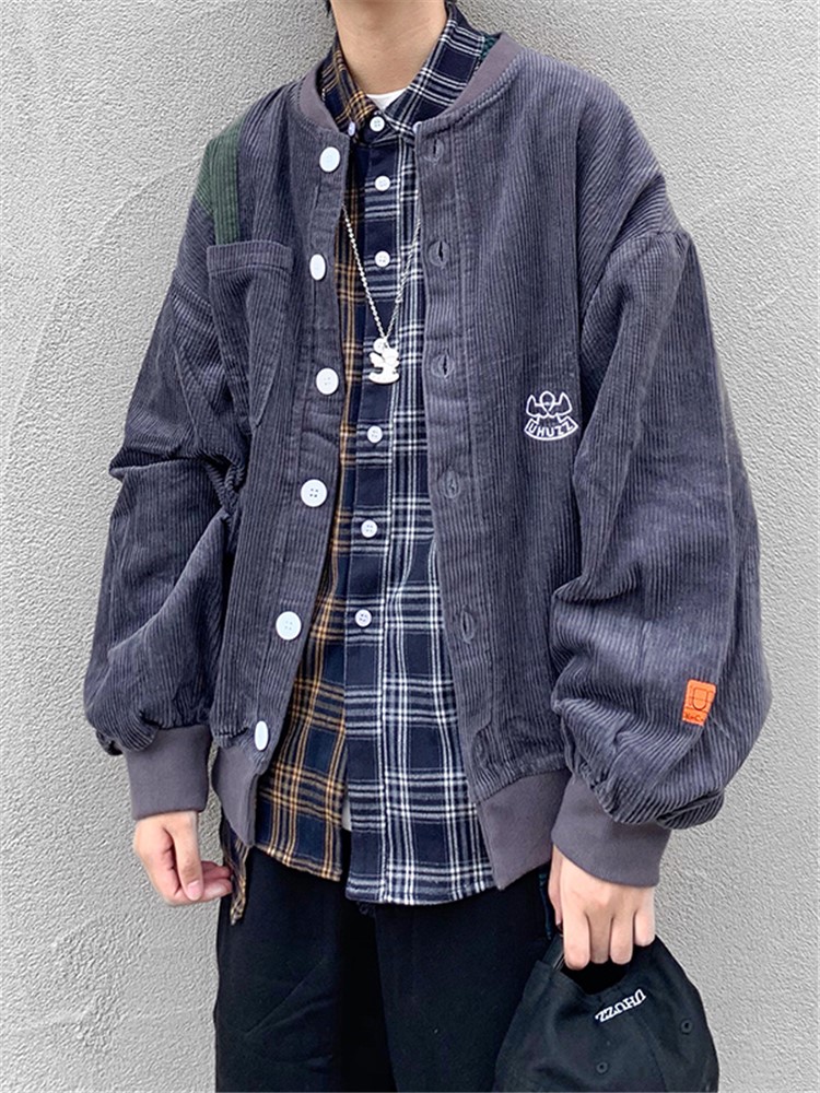 撞色拼接设计,个性时尚,休闲版型,让你轻松驾驭,灯芯绒面料,舒适又保暖,宽松版型,打造嘻哈风格,宽松版型,穿着舒适自在,刺绣图案,彰显青春活力,复古风格,彰显时尚魅力。