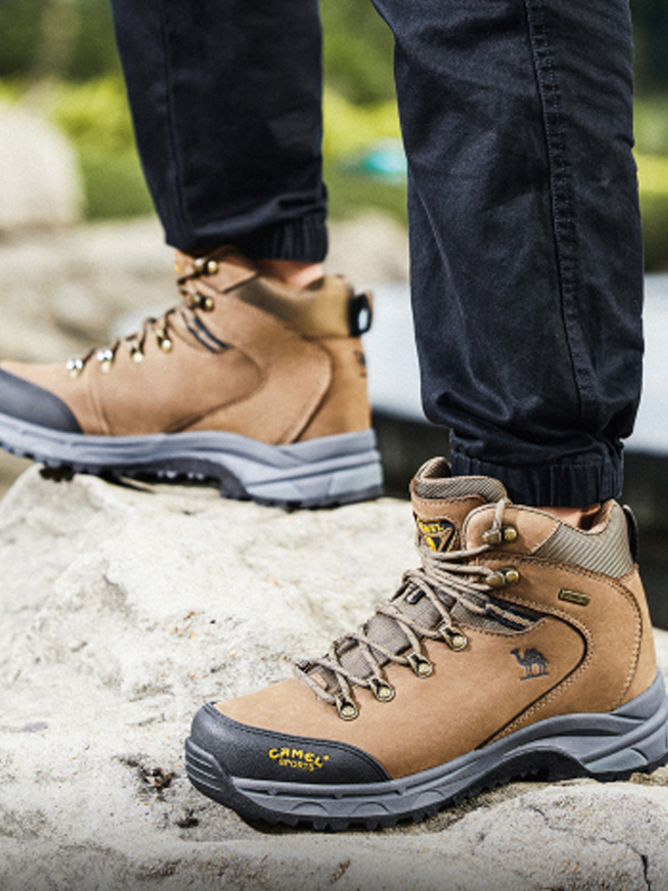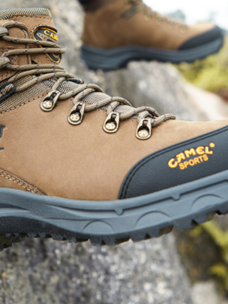 骆驼登山鞋采用符合人体工学的鞋结构,缓解行走中的压力以令穿着者感到轻便省力,高帮设计,呵护脚踝部分,鞋头采用防护设计,防撞的同时耐穿耐磨,集休闲、运动于一体,适合不同的环境穿着,发挥耐磨防滑优势,实现多面抓地效果。