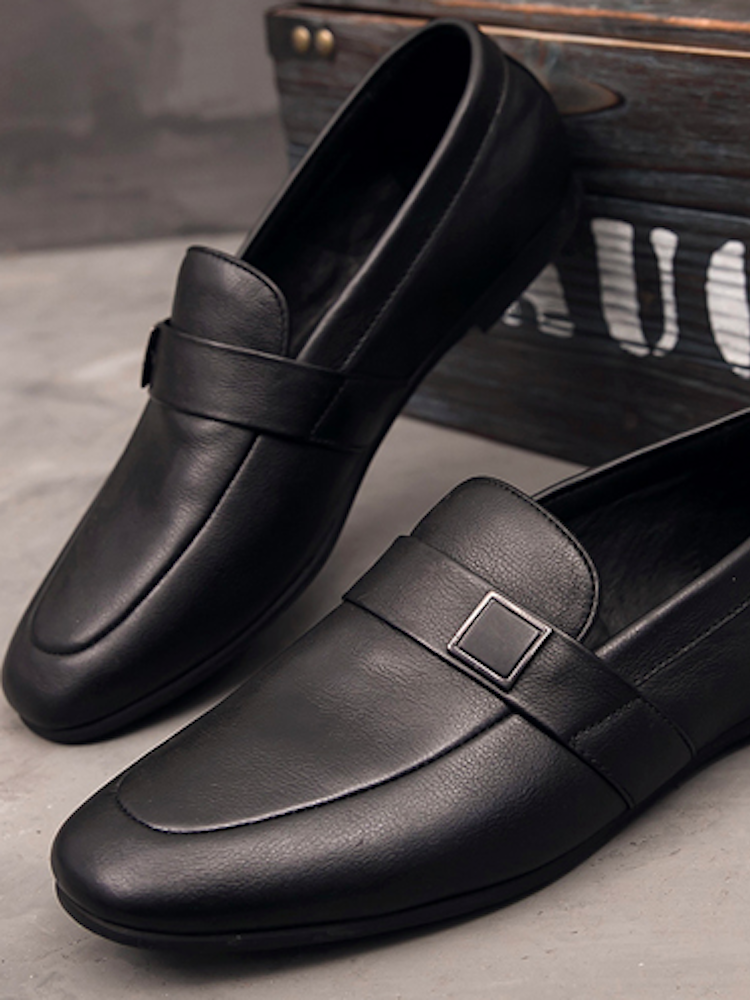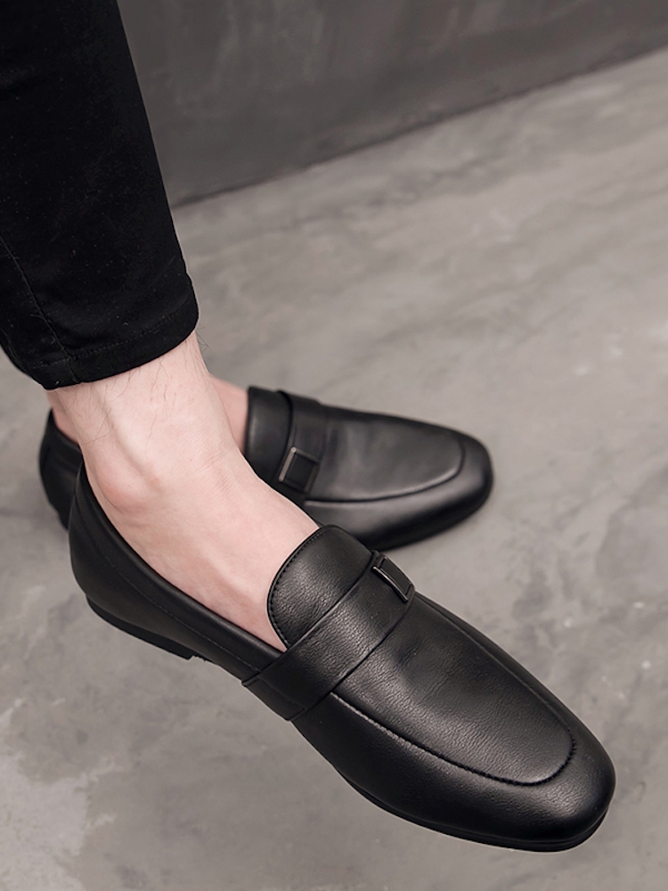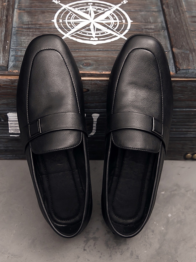 利用拼接线条装饰鞋面,简约又不失细节感。鞋面上的金属皮质搭扣装饰,更添时尚新潮效果。
