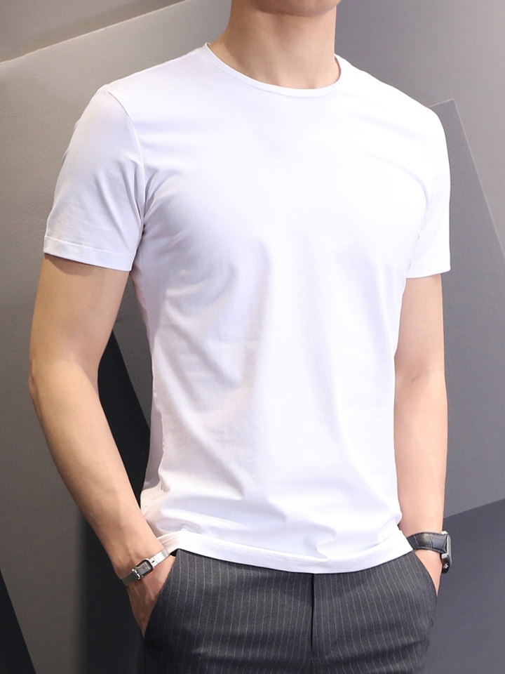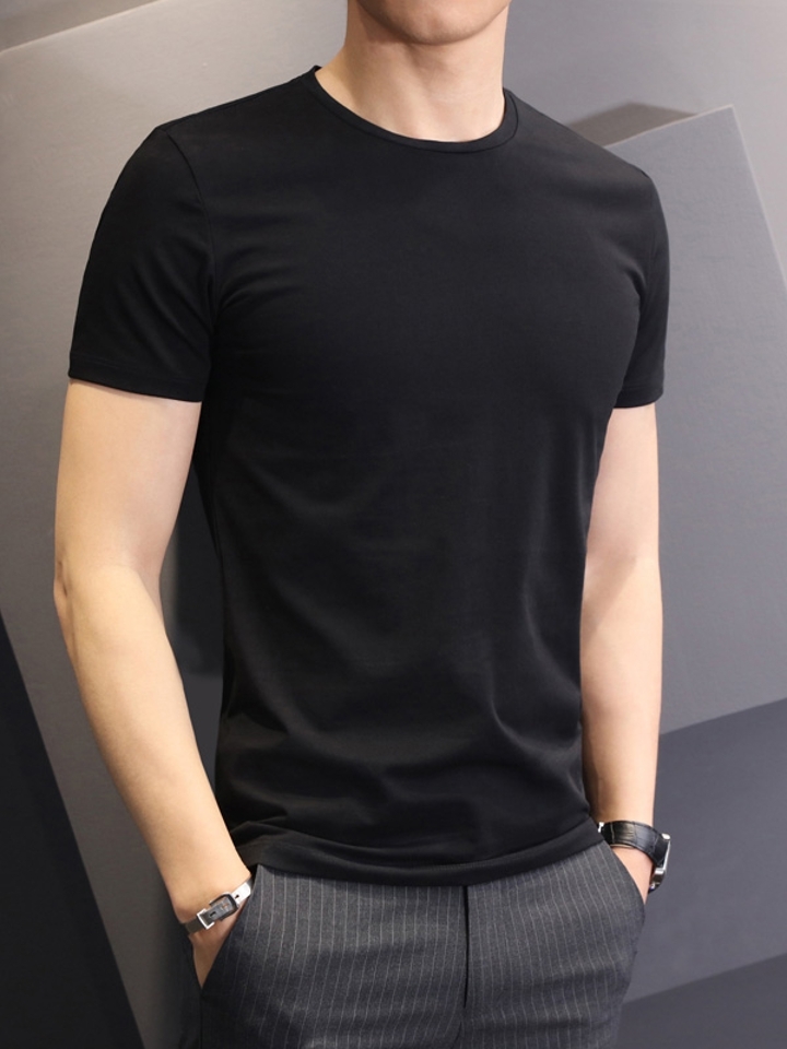 很大气的纯色圆领打底衫,舒适的棉质面料,轻柔透气,夏季穿着凉爽宜人,单穿或者搭外套都是很好的选择。