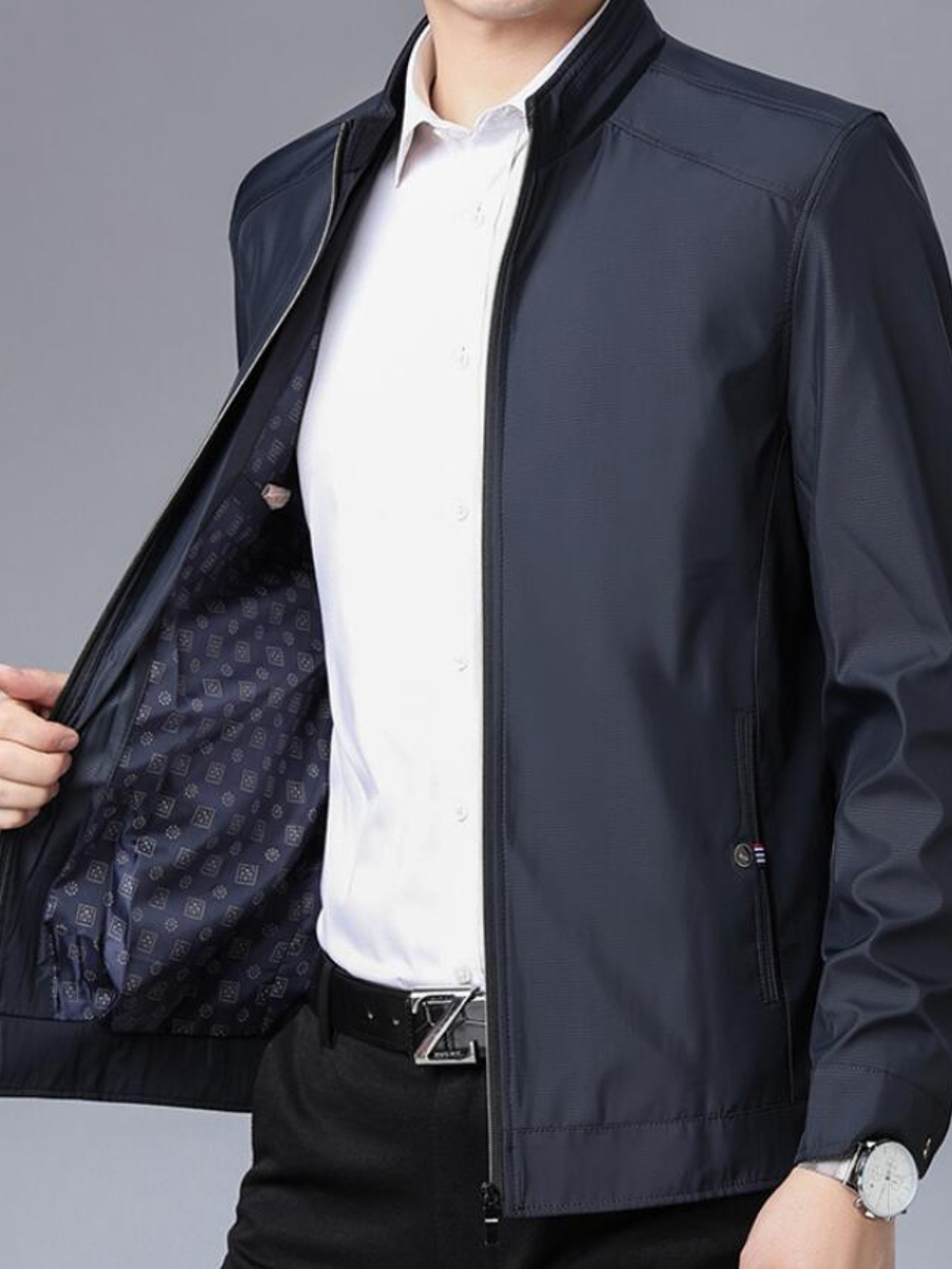 这款男士短款夹克衫精选结实耐磨的高品质面料,手感细腻柔软,顺滑透气的舒适内里,更能带给你舒适自在的穿着感受。
