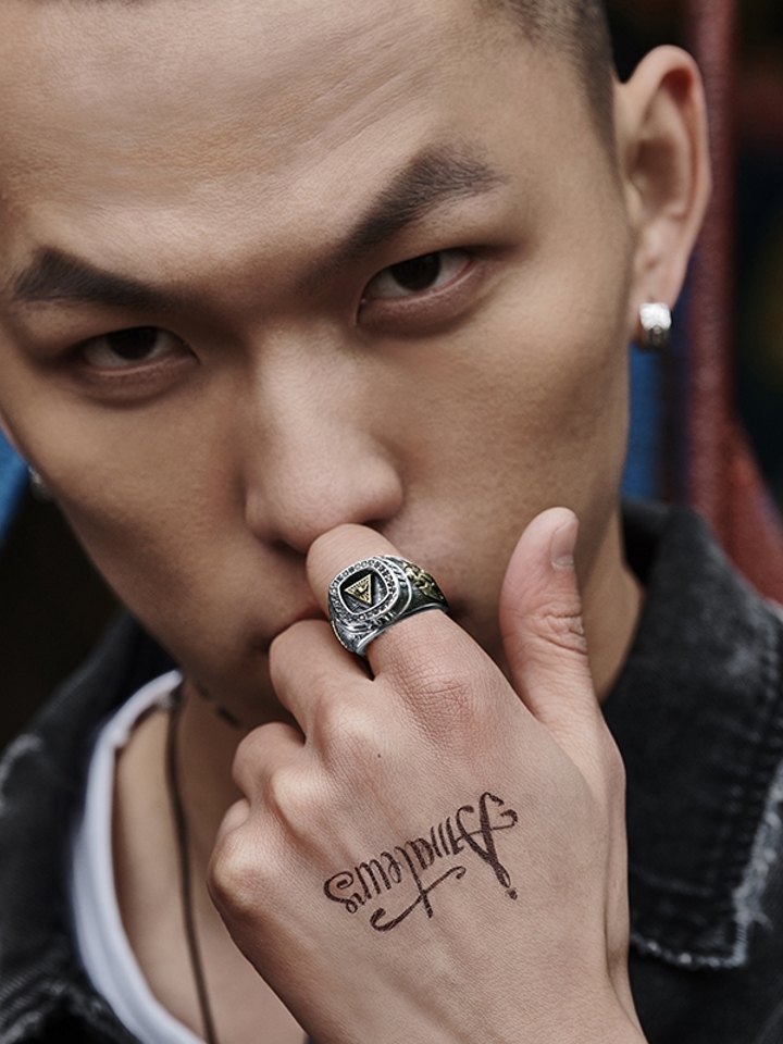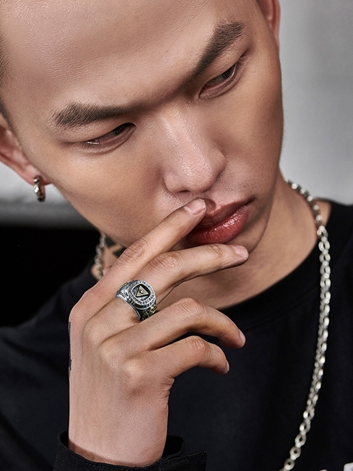 表面上帝之眼造型设计,寓意着深见和远见,充满复古意味。整个戒指没有过多的装饰,简单利落,展现出令人折服的优雅和自信,很是独特个性。