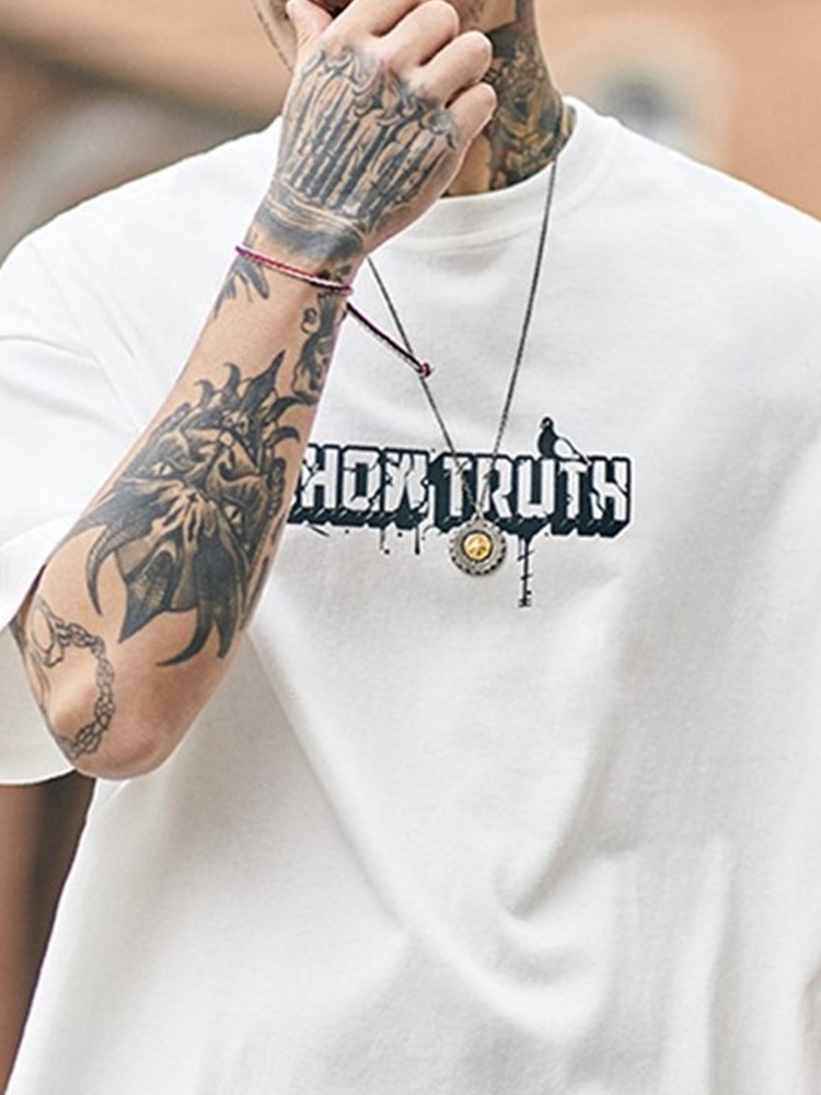 宽松版型,夏季穿着舒适,胸前字母印花,个性吸睛,胸前字母印花,个性潮流,宽松版型,穿着舒适自在,宽松的版型,嘻哈范十足。