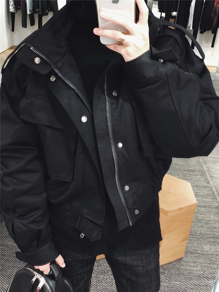 这款棉服采用了经典的飞行员夹克版型,上身效果很好,很适合在冬季穿着,搭配上一件黑色的板鞋,就能轻松穿出潮男范。