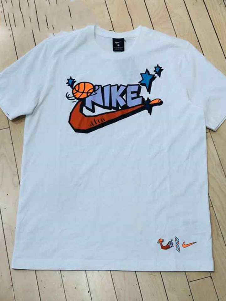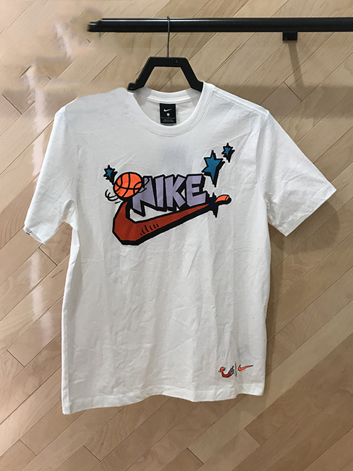 简约的格调,胸前的耐克印花标志,无时不在彰显着品牌魅力。经典的圆领设计,纯棉材质,质感柔软,舒服透气。在搭配上与其他的裤子也十分的百搭。